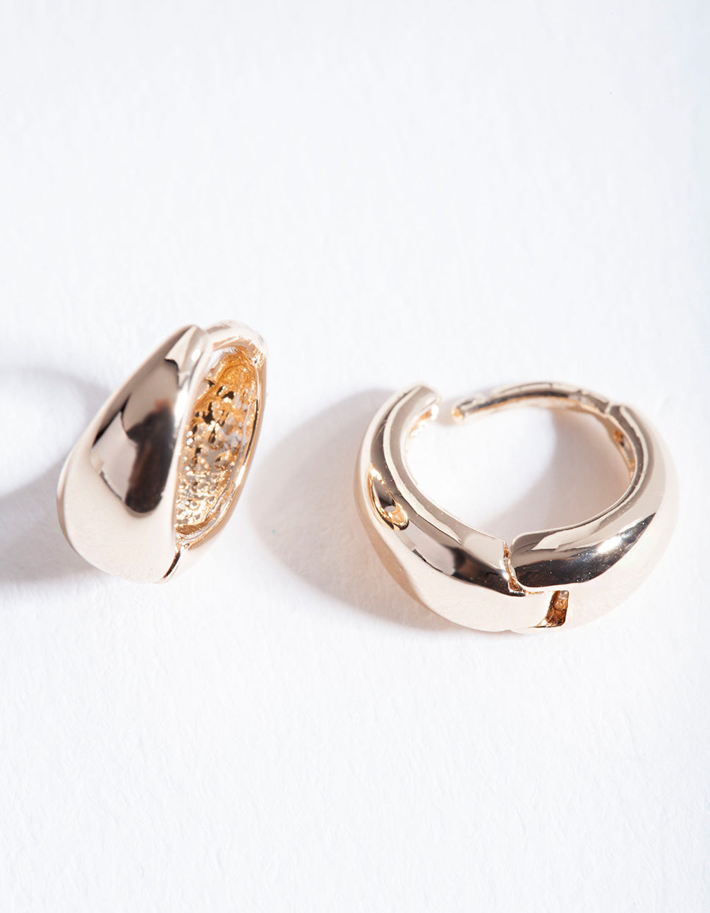 Stack it up with huggies! This range is perfect for those with multiple piercings! These chunky small huggie hoops feature a a gold-toned setting and a polished finish. Wear the earring set on it's own or stack multiple piercings with other sterling silver designs (eg. hoops, huggies, studs etc.)