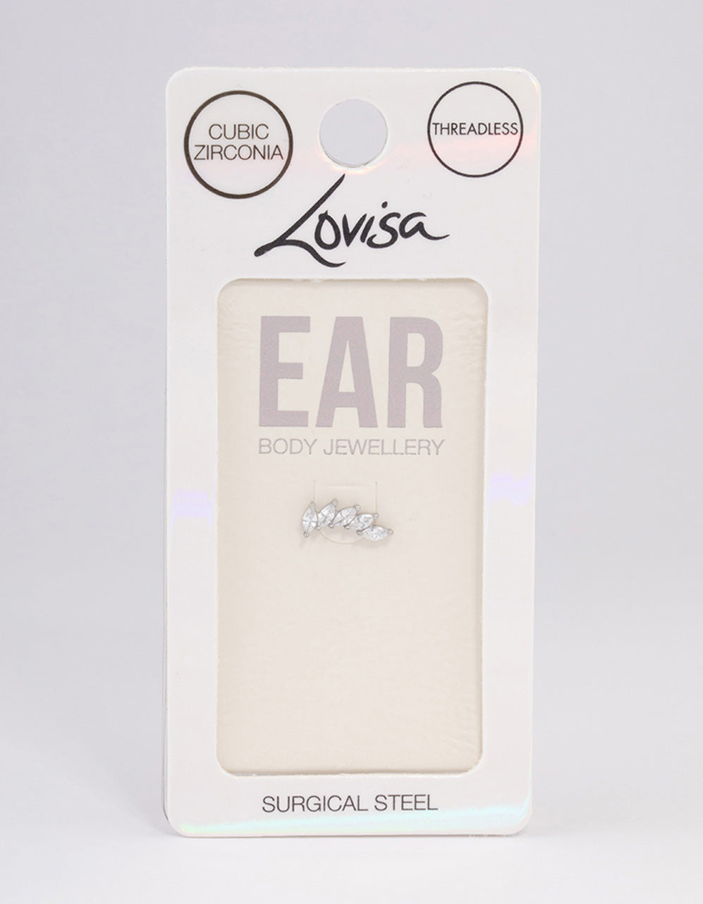 Surgical Steel Cubic Zirconia Leaf Single Threadless Flat Back Stud