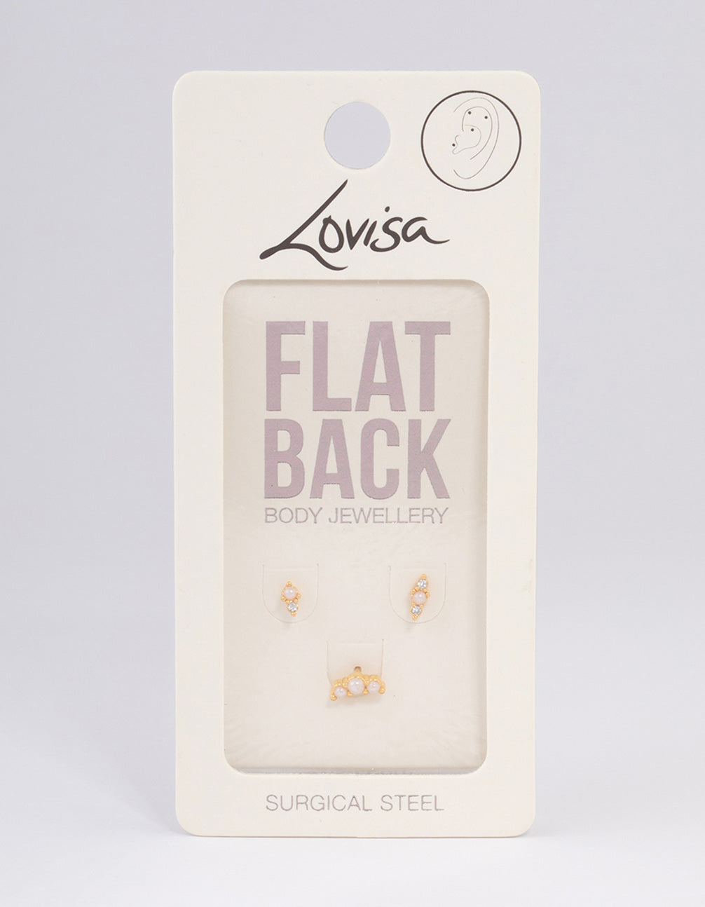 - This piercing pack contains three individual flat backs with simple, pearl features for an elegant touch.