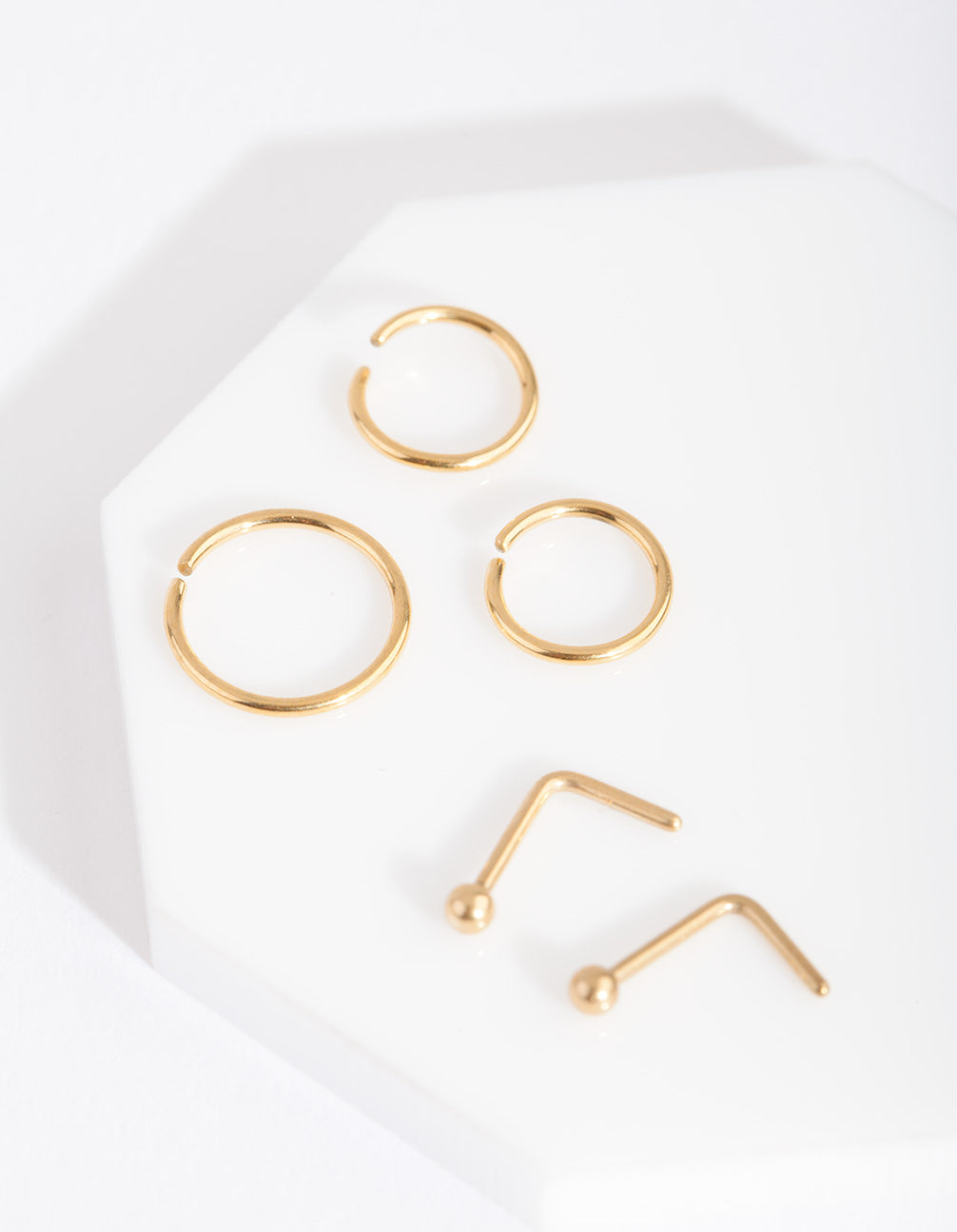 Lovisa body jewellery is made from surgical steel, making it the perfect option for everyday wear. This collection has been made with piercings in mind and features both trend-led and classic styles that you can swap out to suit any occasion. This gold-toned nose ring pack features ball studs and varying sized ring styles. Mix and match your nose rings to coordinate with Lovisa accessories for a fashion-forward look!