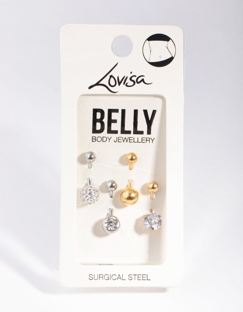Round out your body jewellery collection with a chic belly ring pack. This set includes four pieces that boast stunning cubic zirconia embellishments. They are crafted from surgical steel so they are gentle on your skin and safe for daily use. They have a gauge of 14 and are 1.6 mm in length.
