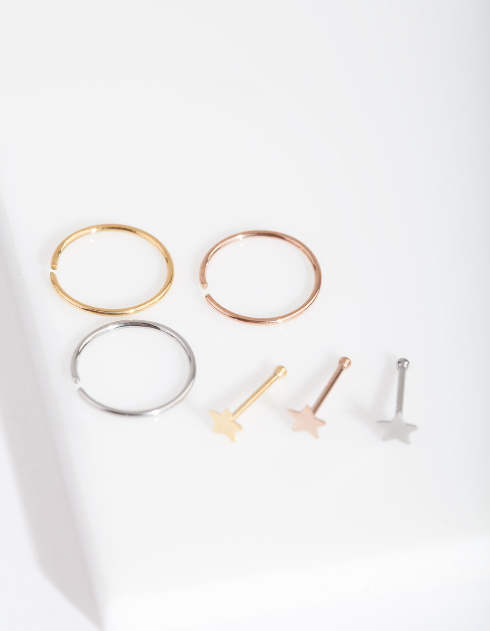 Mixed Metal Fine Star Nose Piercing 6-Pack