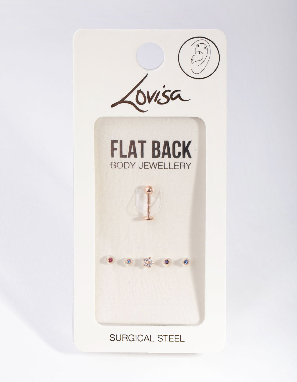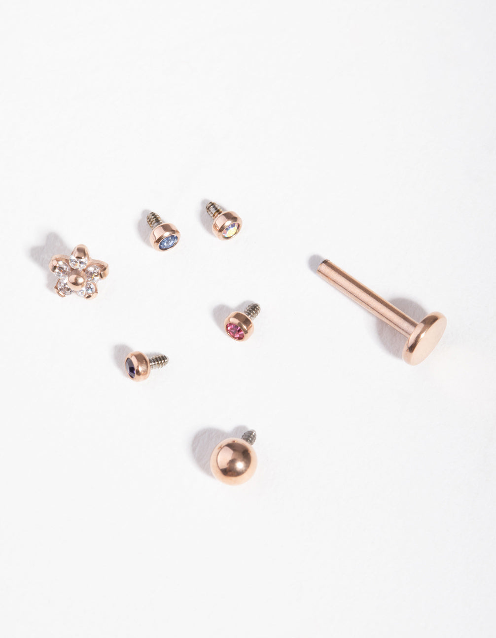 Switch up your style effortlessly with this Gold Plated Surgical Steel Single Flat Back Bar & Flower Interchangeable Ends Pack. This versatile jewellery set comes with one comfortable flat back bar and six stunning screw-on ends, including delicate flower designs, letting you customise your look daily. Crafted from durable surgical steel with a luxurious gold plating, this set is perfect for creating a chic, polished vibe. Pair it with other gold jewellery for a coordinated look or mix and match with your favourite accessories. Perfect for those who love to keep their piercings fresh and stylish with minimal effort!