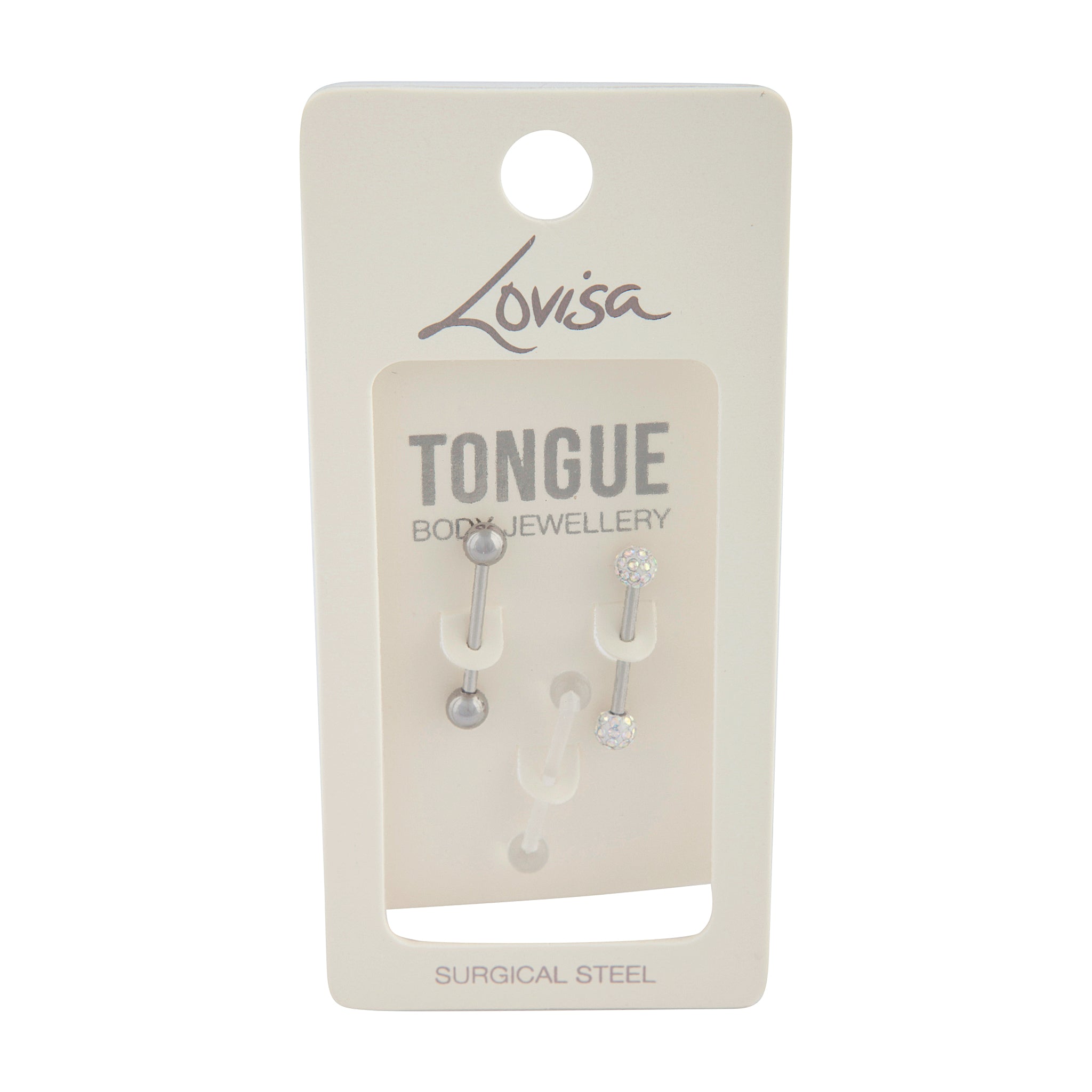 Lovisa body jewellery is made from surgical steel, making it the perfect option for everyday wear. This collection has been made with piercings in mind and features both trend-led and classic styles that you can swap out to suit any occasion. This 3 pack of tongue bars comes with a clear, silver toned, and diamante design. All are made with surgical steel for safe everyday wear. Mix and match your tongue rings to coordinate with Lovisa accessories for a fashion-forward look!