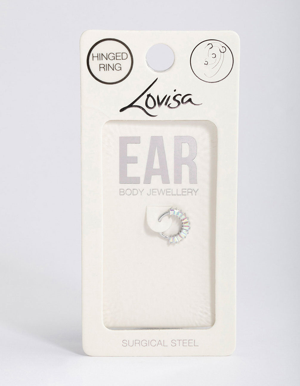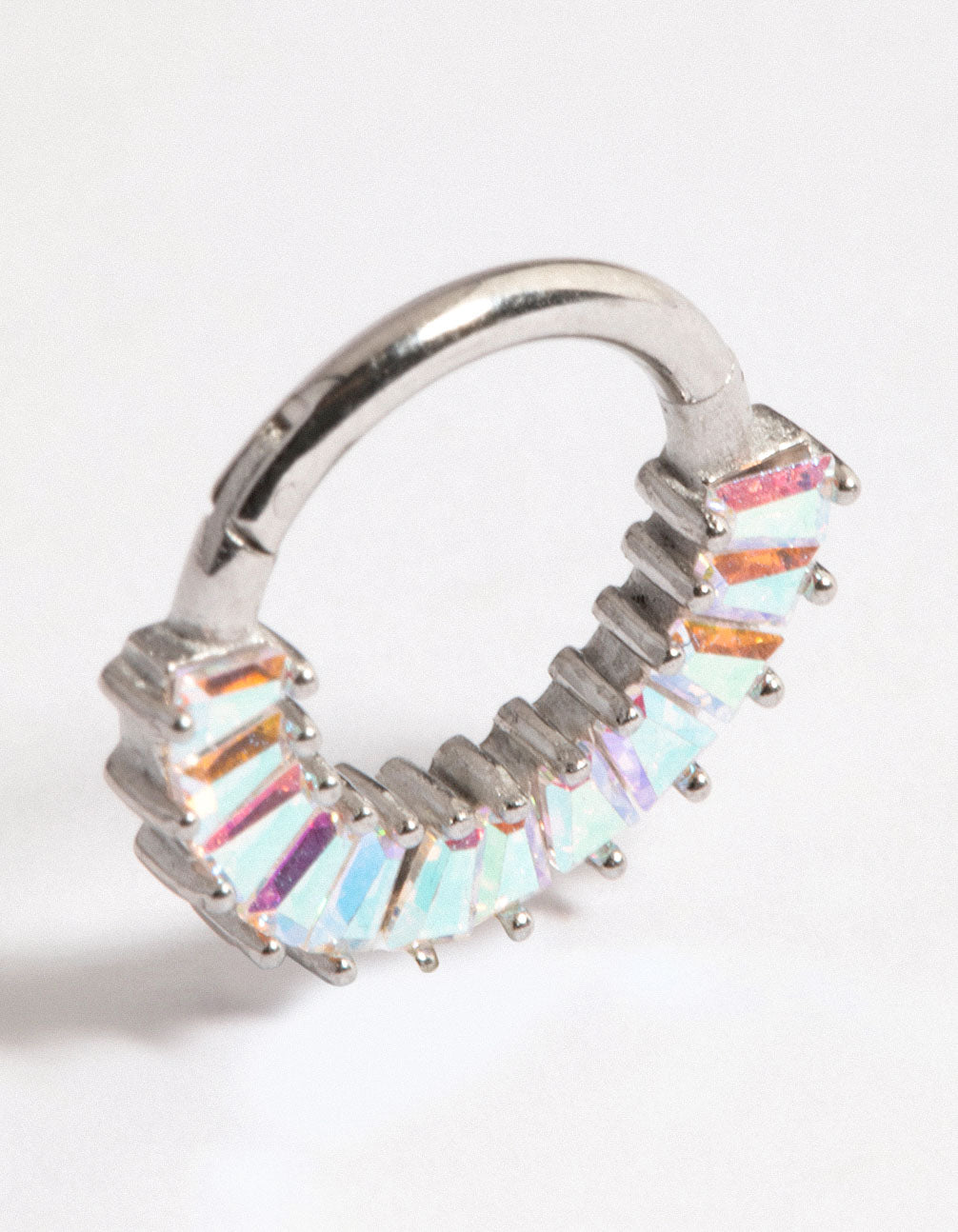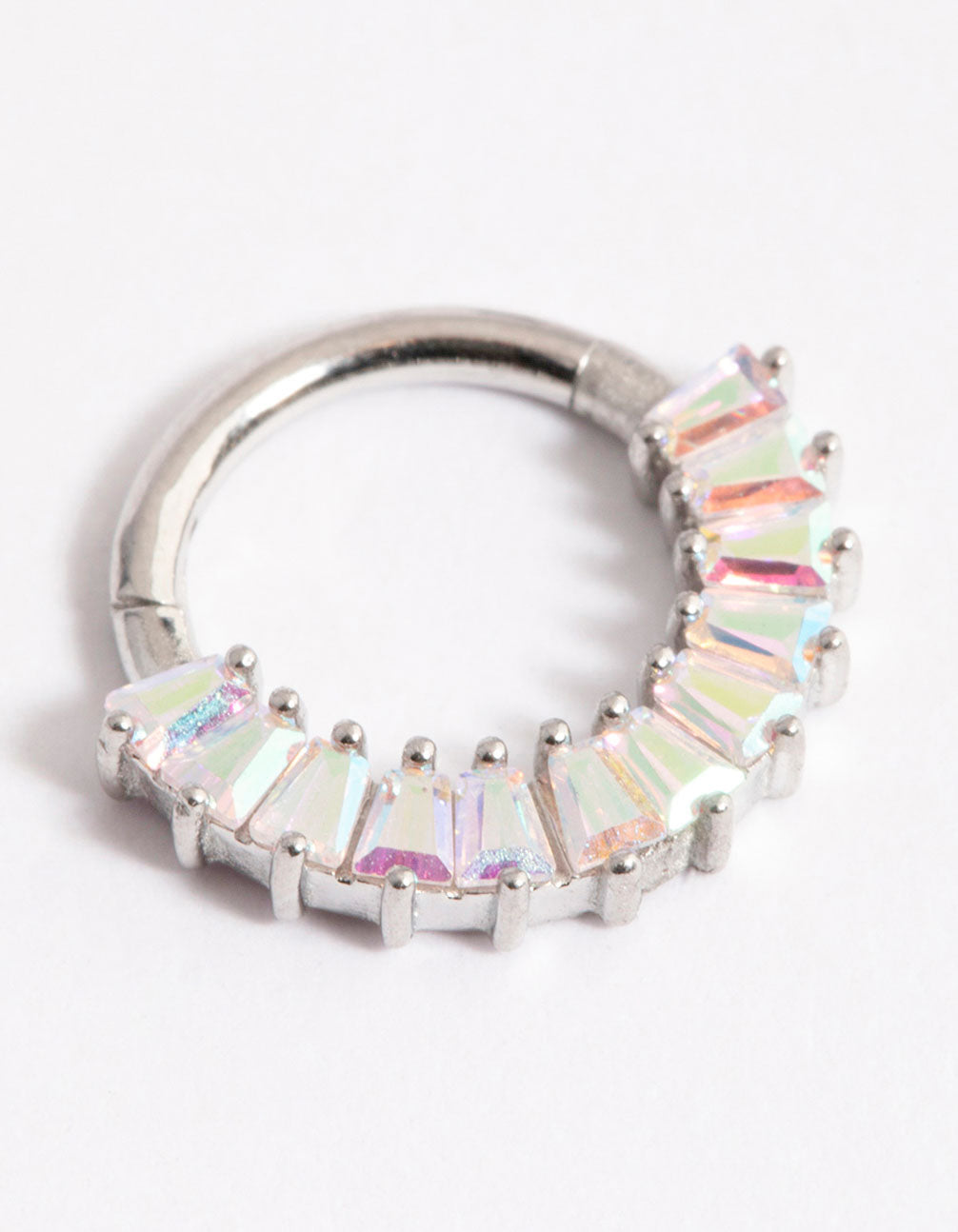 - This versatile clicker ring features a baguette cut stone, perfect for adding a modern finish to your look. Clicker rings can be styled as ear piercings, perfect for your lobe, rook, helix, or even for your septum.