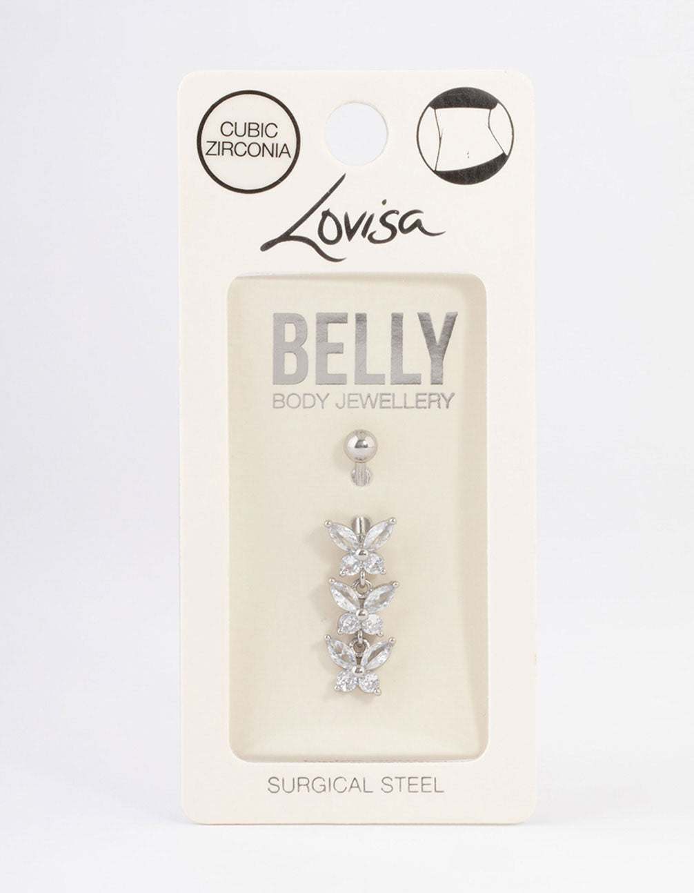 Surgical Steel Cubic Zirconia 3 Butterfly Belly Bar