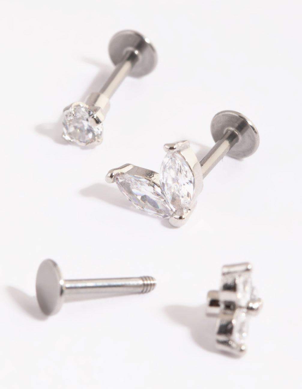 Add a touch of subtle sparkle to your look with this Surgical Steel Cubic Zirconia Dainty Flat Back Pack. Perfect for piercings, this jewellery set is crafted from durable surgical steel, making it ideal for everyday wear. Each piece features delicate cubic zirconia gemstones, adding just the right amount of shimmer to your style. These dainty flat backs are perfect for creating a chic, minimalist vibe – whether you're rocking them in your helix, lobe, or tragus piercings. Pair them with other elegant jewellery or wear them solo for a simple, polished look. Perfect for stacking or mixing and matching, this is the go-to pack for any jewellery lover looking to elevate their ear game!