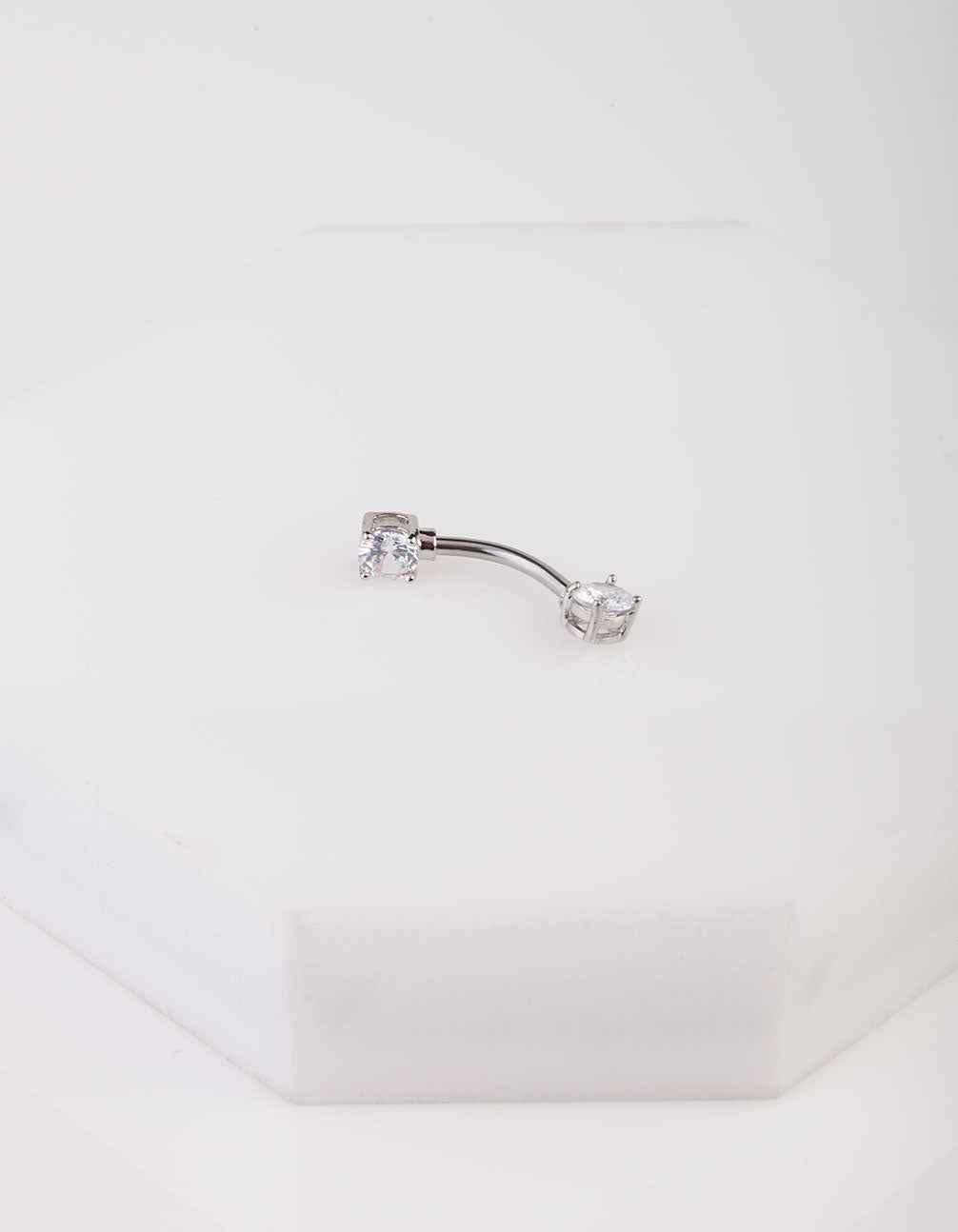 Body jewellery will add some personality to your look. Belly bars and rings are a fun way to show off your style and add something different to your vacation or poolside outfits. This belly bar is silver toned, and features shining diamantes. It has a surgical steel post. Check out our cubic zirconia range for accessories to match!
