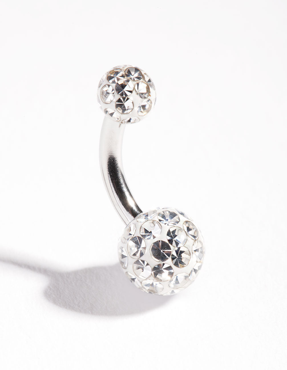Body jewellery made with surgical steel and trend-focused designs will add some personality to your look. Belly bars and rings are a fun way to show off your style and add something different to your vacation or poolside outfits. This belly bar comes with a double diamante embellished bead design.