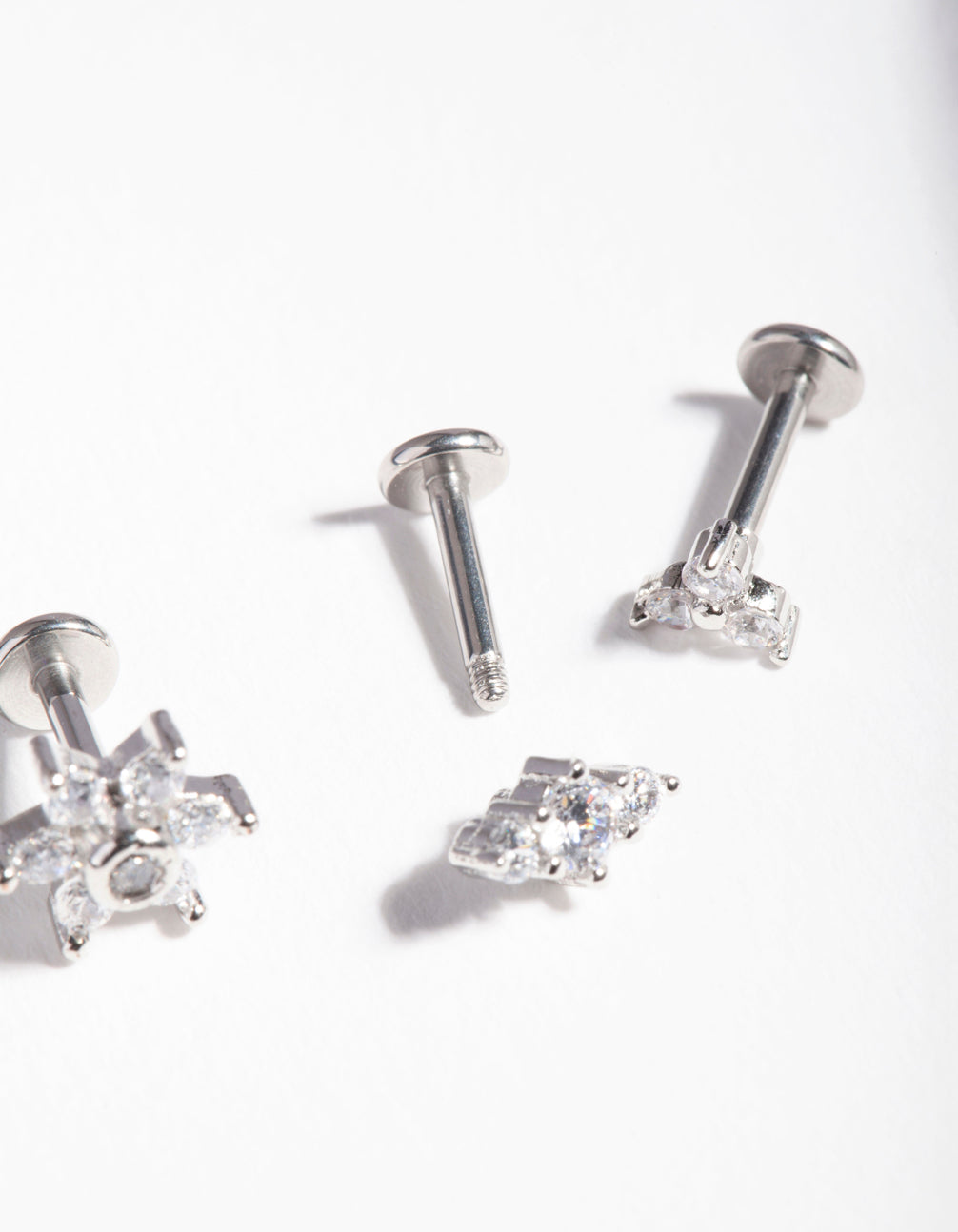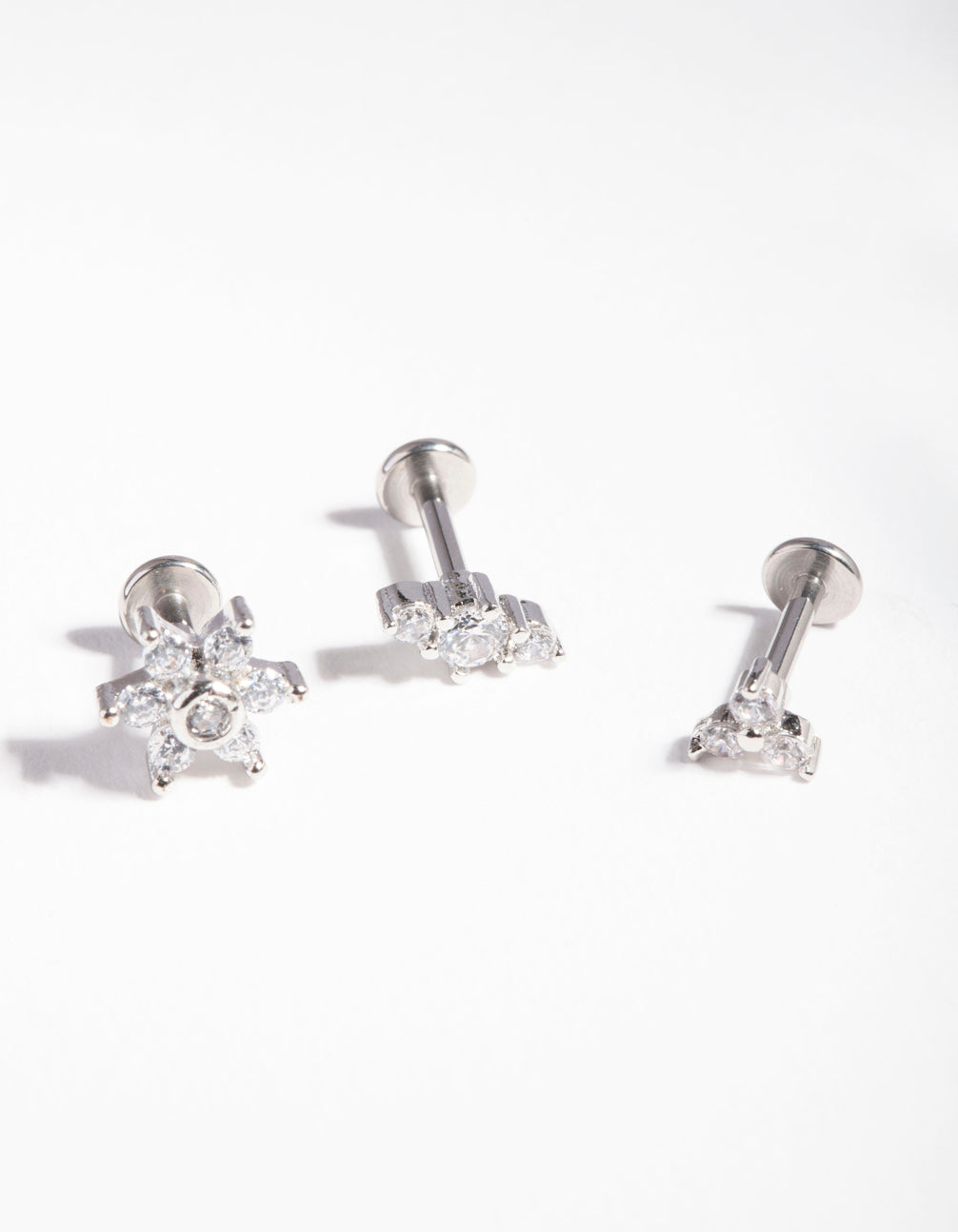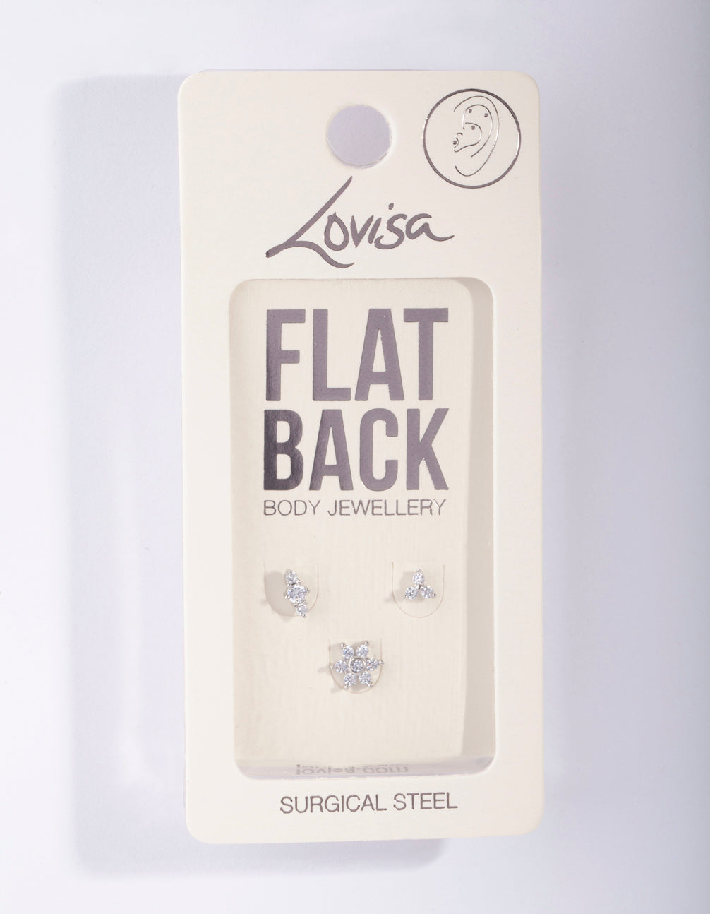 If you love piercings, the body jewellery range from Lovisa is perfect for you. Pick up one of these reliable and timeless styles and curate your ear stack with Lovisa's collection of clickers, flat backs, barbells and more. This pack comes with a trio of flat back designs with diamante embellishments and a floral motif. It has a surgical steel post, which makes it more gentle for daily use. Check out our cubic zirconia range for accessories to match!