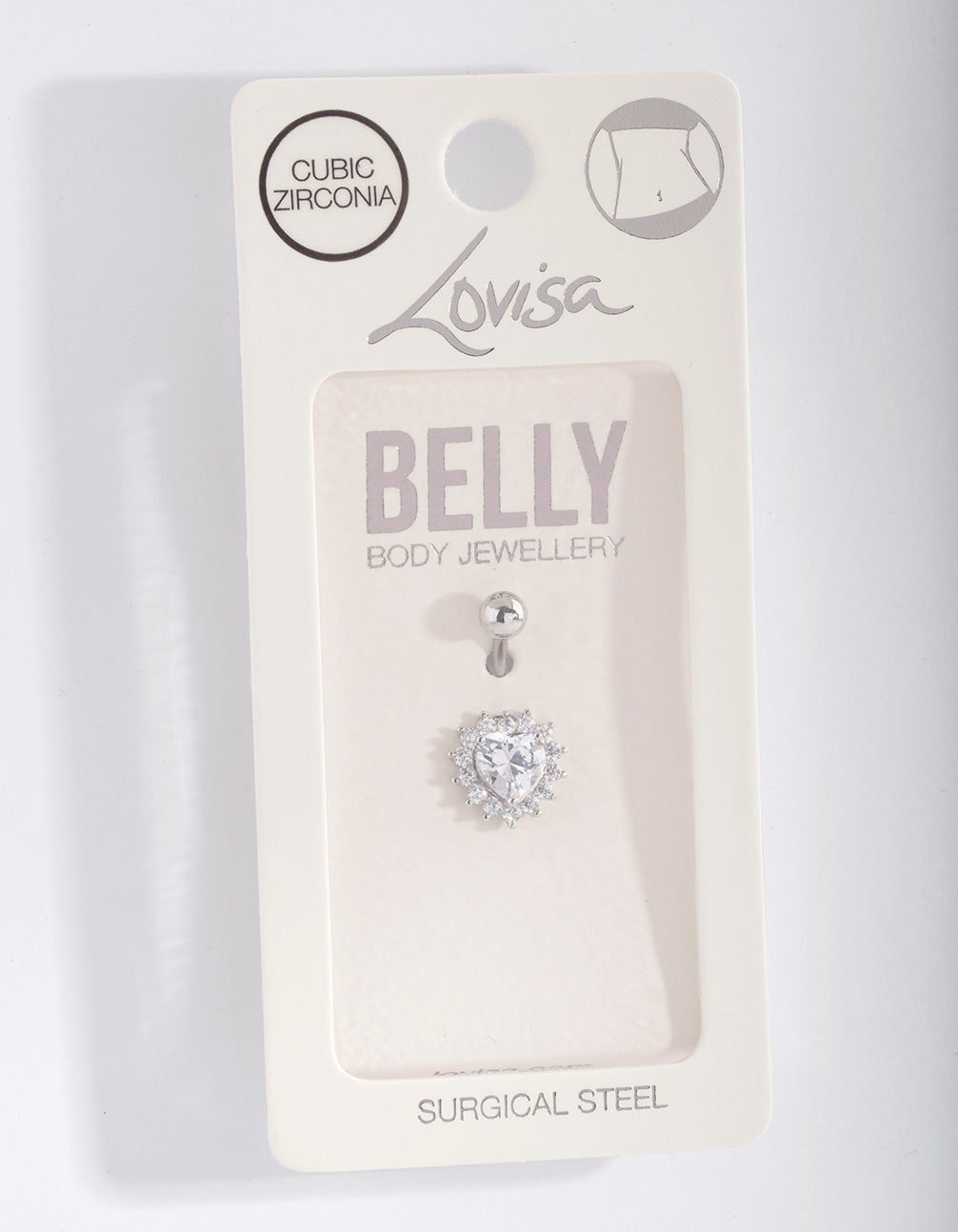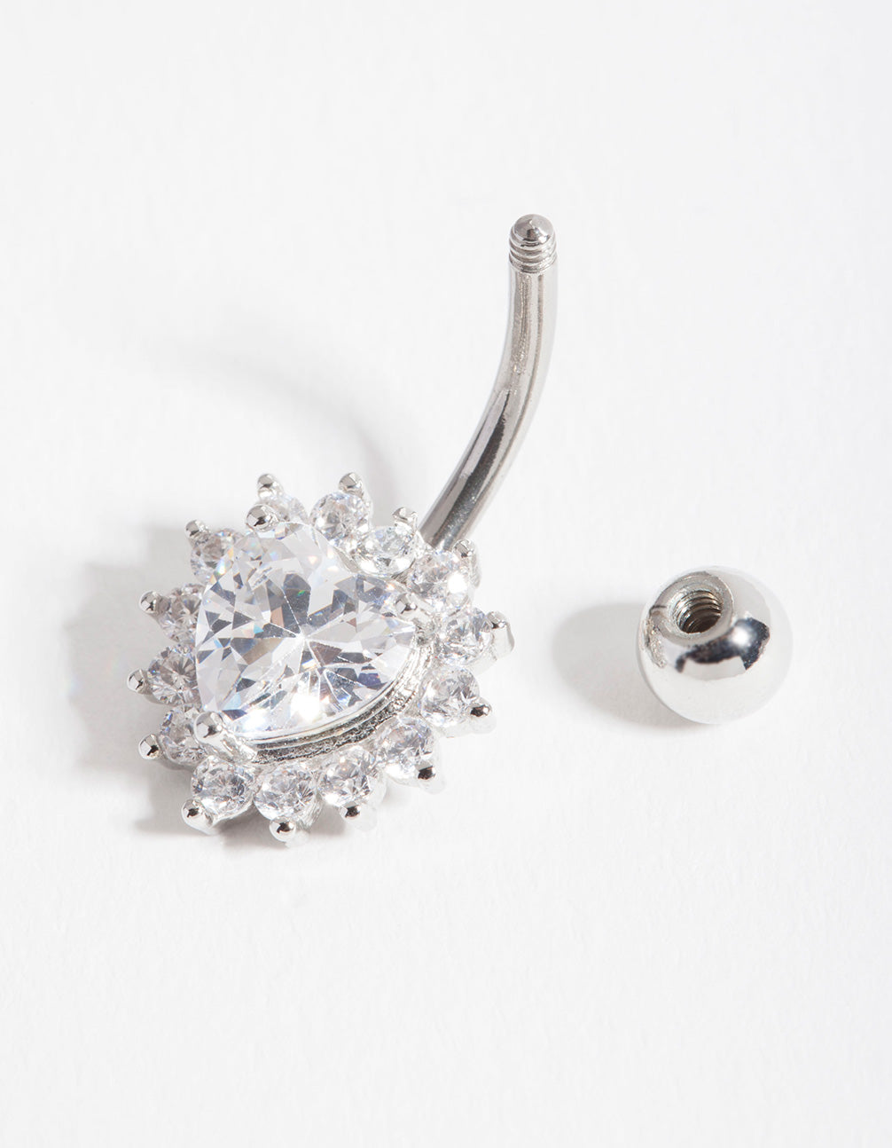 Surgical Steel Cubic Zirconia Halo Heart Belly Bar Surgical Steel Cubic Zirconia Halo Heart Belly Bar Surgical Steel Cubic Zirconia Halo Heart Belly Bar