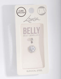 Surgical Steel Cubic Zirconia Halo Heart Belly Bar