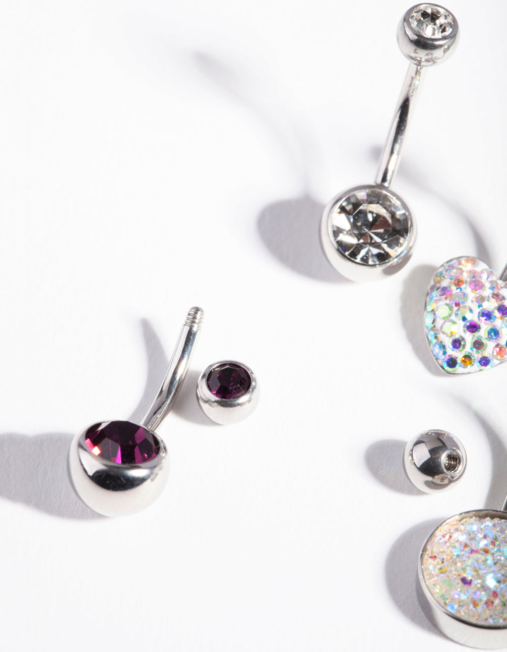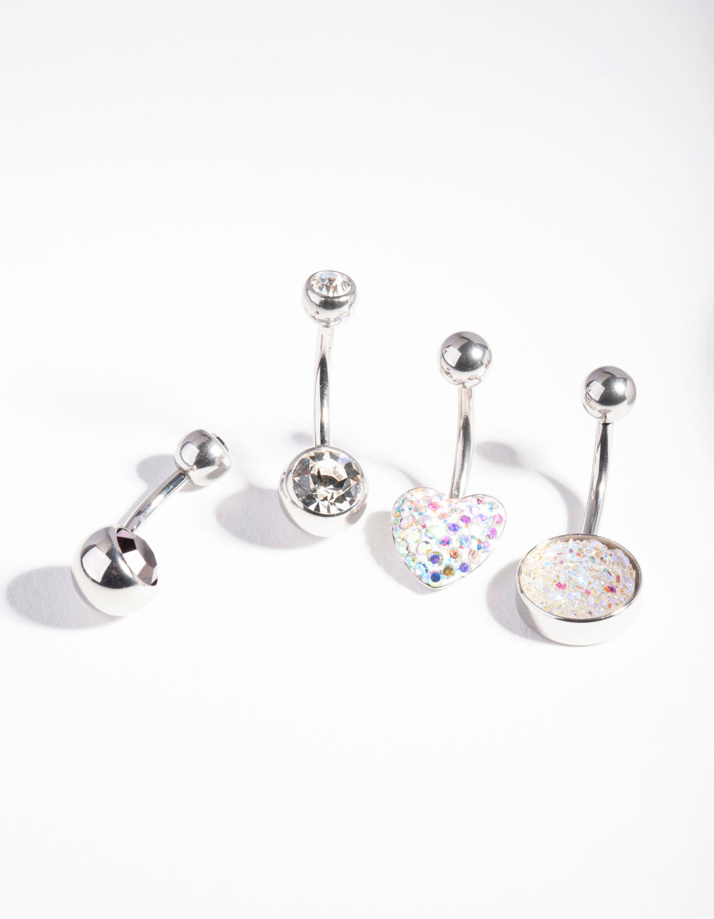 Lovisa body jewellery is made from surgical steel, making it perfect for daily wear. This 4 pack belly bar boasts diamante embellished hearts and large gem designs.