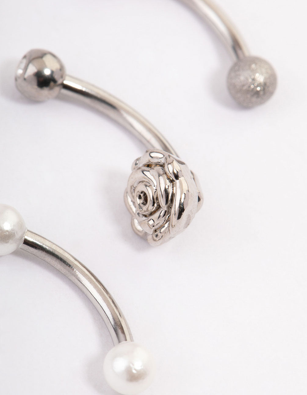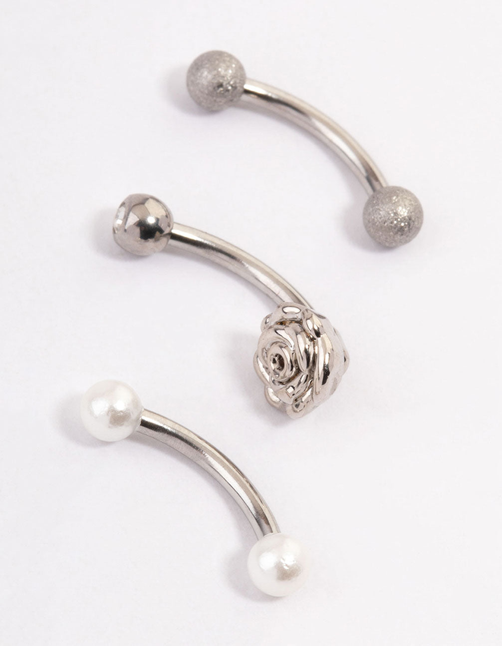 Surgical Steel Rose & Faux Pearl Barbell Pack
