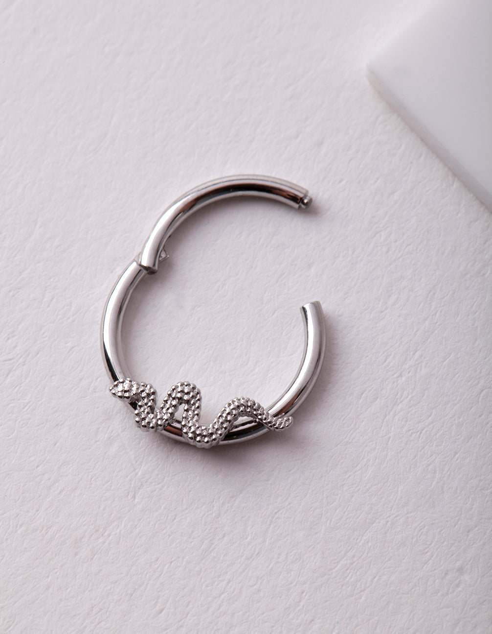 Lovisa body jewellery is made from surgical steel, making it perfect for daily wear. This clicker earring is perfect for cartilage piercings and features a snake motif. These pieces have surgical steel posts. Cartilage earrings look great as helix, conch and tragus piercings. Check out our cubic zirconia range for accessories to match!