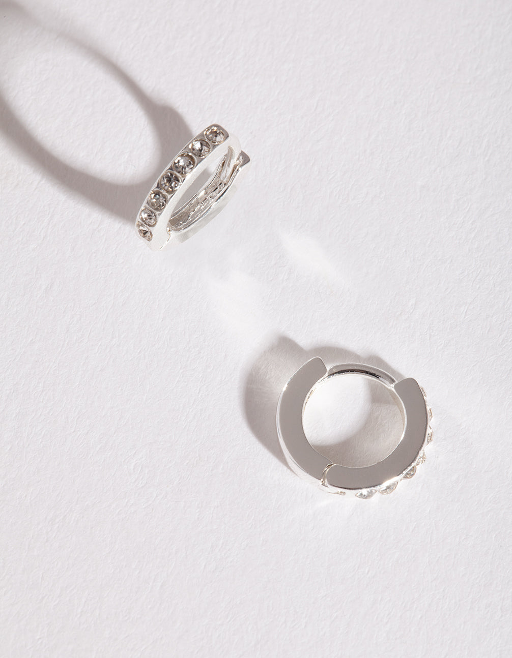 Stack it up with huggies! This range is perfect for those with multiple piercings! These huggies boast diamantes on a silver-toned hoop design.
