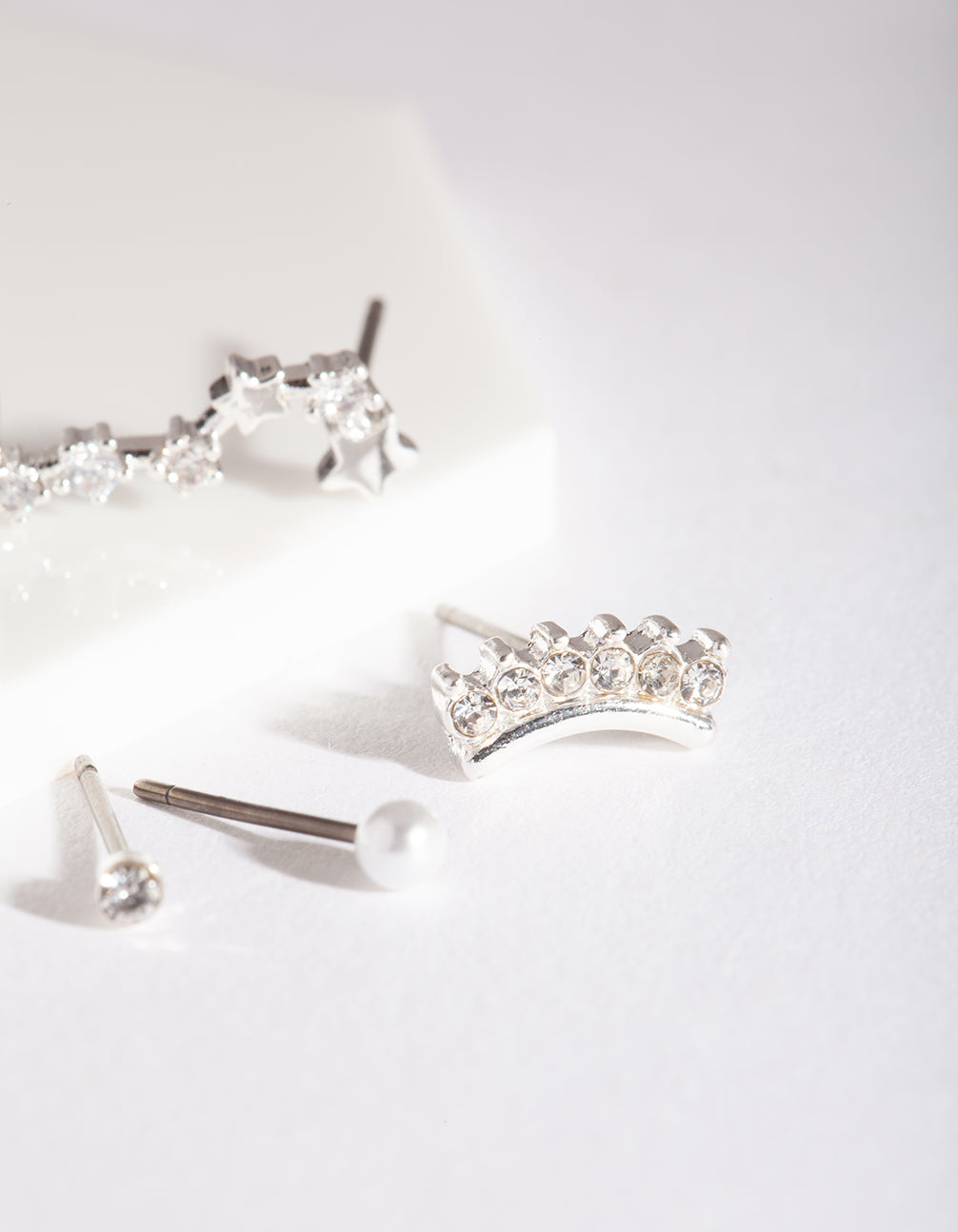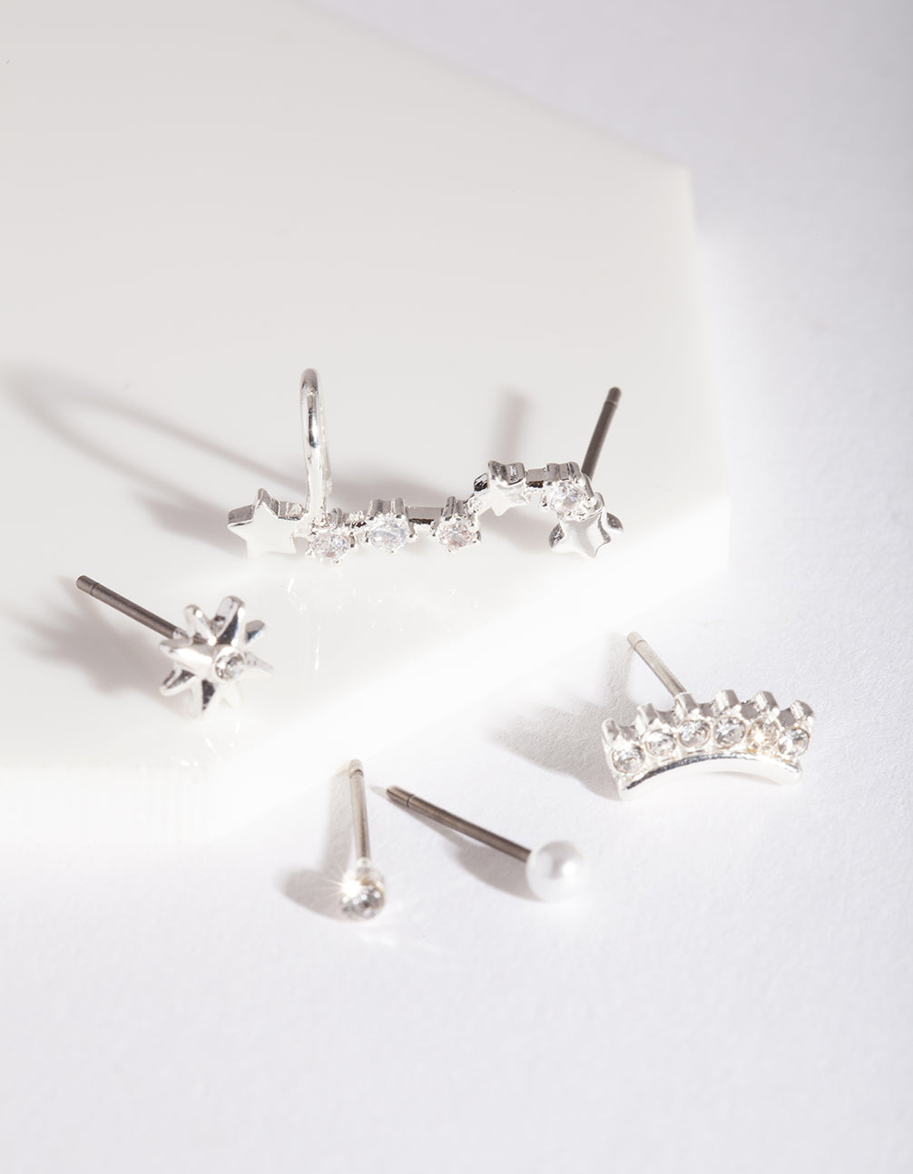 Can‚Ä?€™t decide on just one? You don‚Ä?€™t have to! This style features a variety of earrings so you can mix and match to suit your mood. This pack boasts 5 pairs of silver-toned earrings featuring diamante celestial stars and pearl.