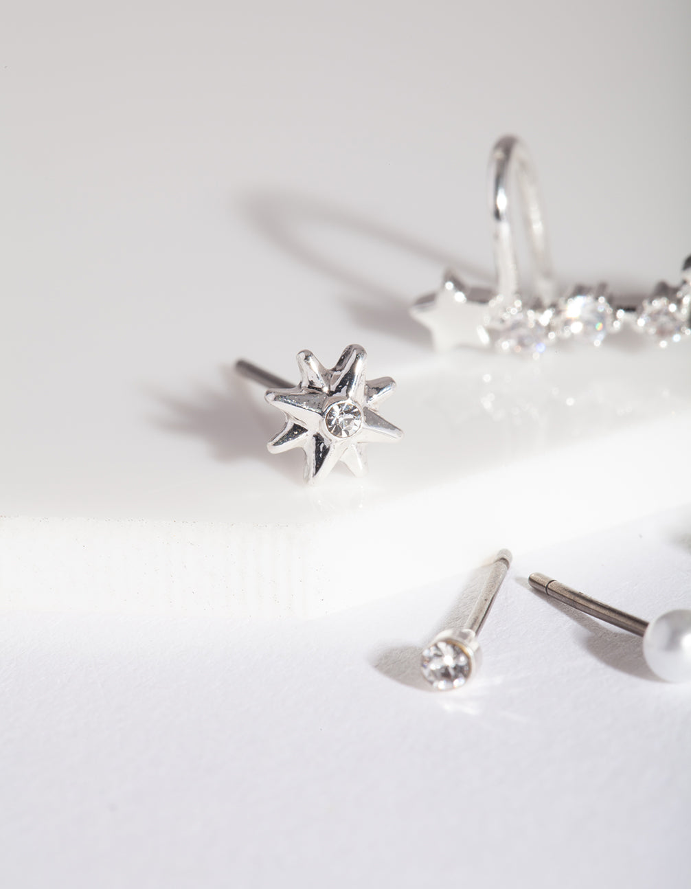 Silver Pearl Star Cluster Ear Pack