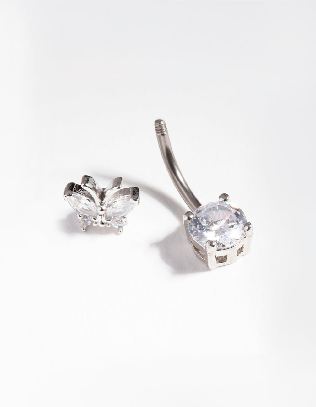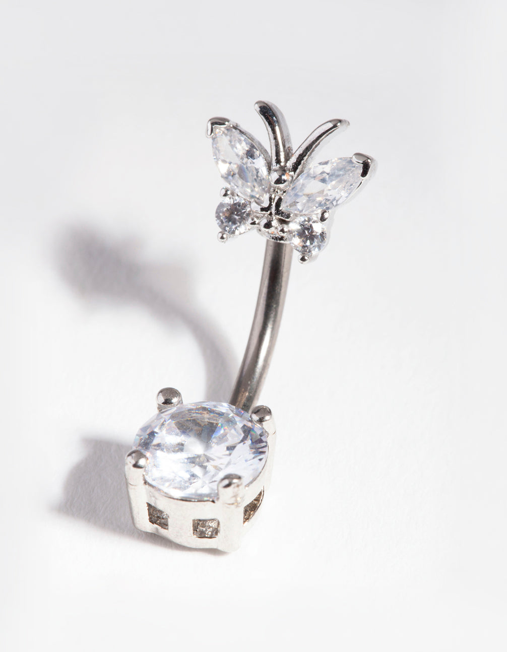 Belly bars and rings are a fun way to show off your style and add something different to your vacation or poolside outfits. This belly bar features butterfly-themed cubic zirconia stone embellishments. It has a titanium post. Check out our cubic zirconia range for accessories to match!