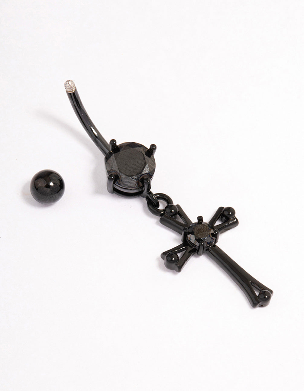 • Coated Surgical Steel Cubic Zirconia Cross Drop Belly Ring - link has visual effect only