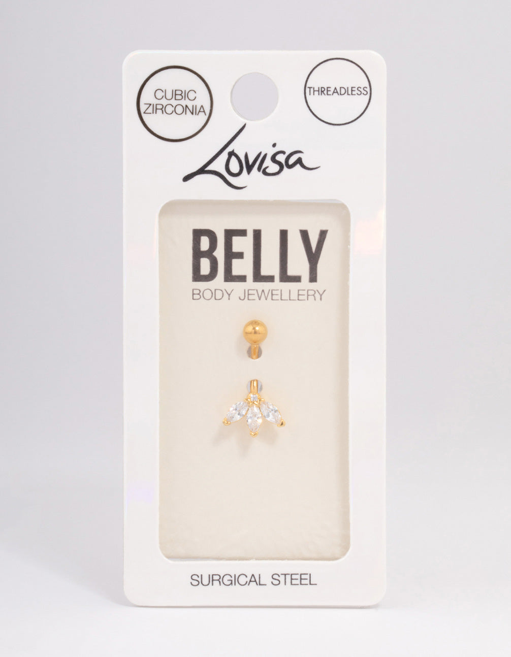 Gold Plated Surgical Steel Cubic Zirconia Classic Fan Threadless Belly Bar
