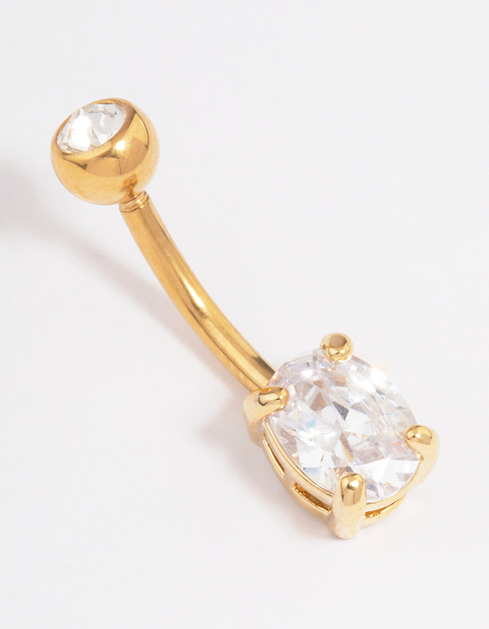 Gold Plated Surgical Steel Cubic Zirconia Classic Claw Belly Ring