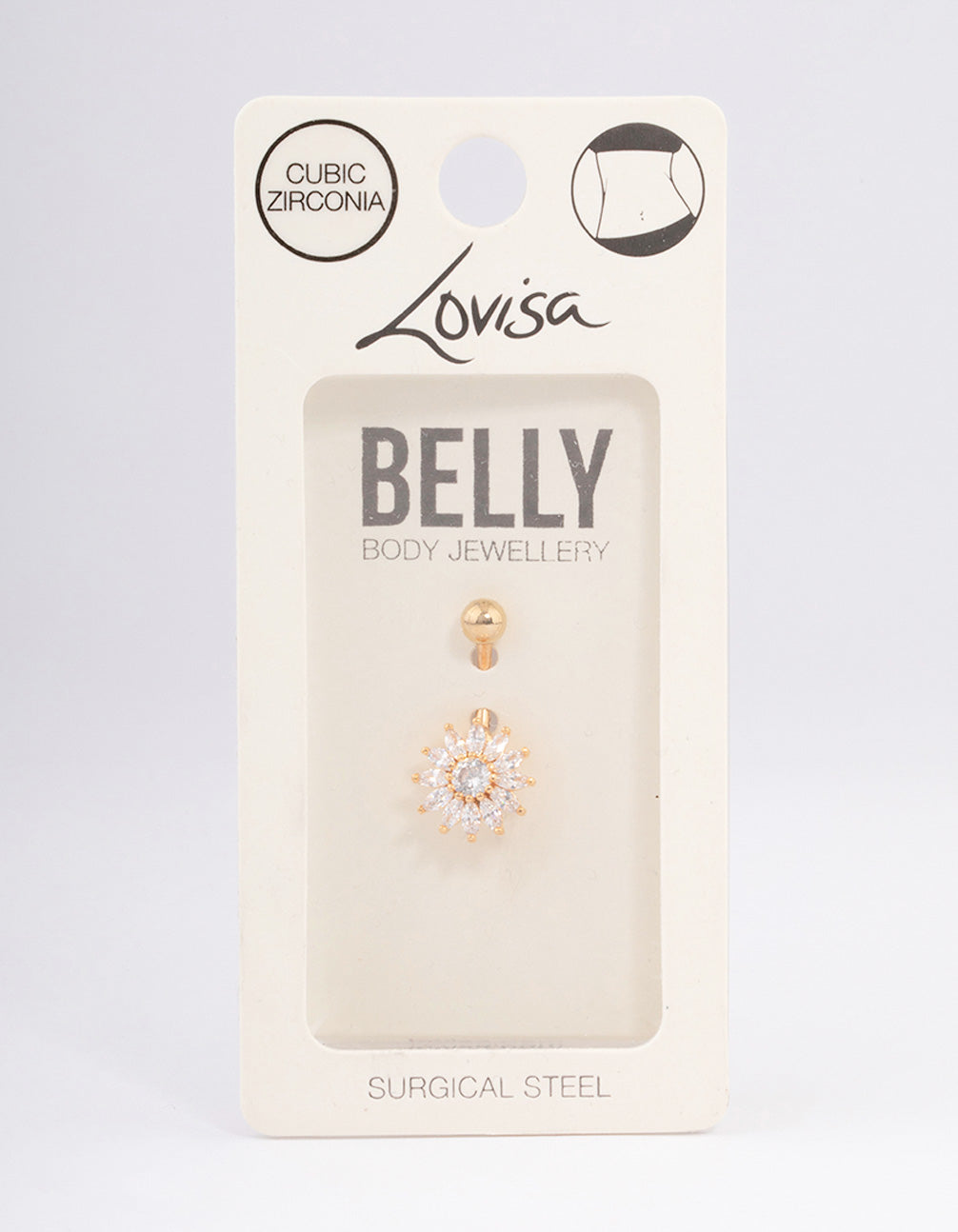 Gold Plated Surgical Steel Cubic Zirconia Cluster Large Belly Ring
