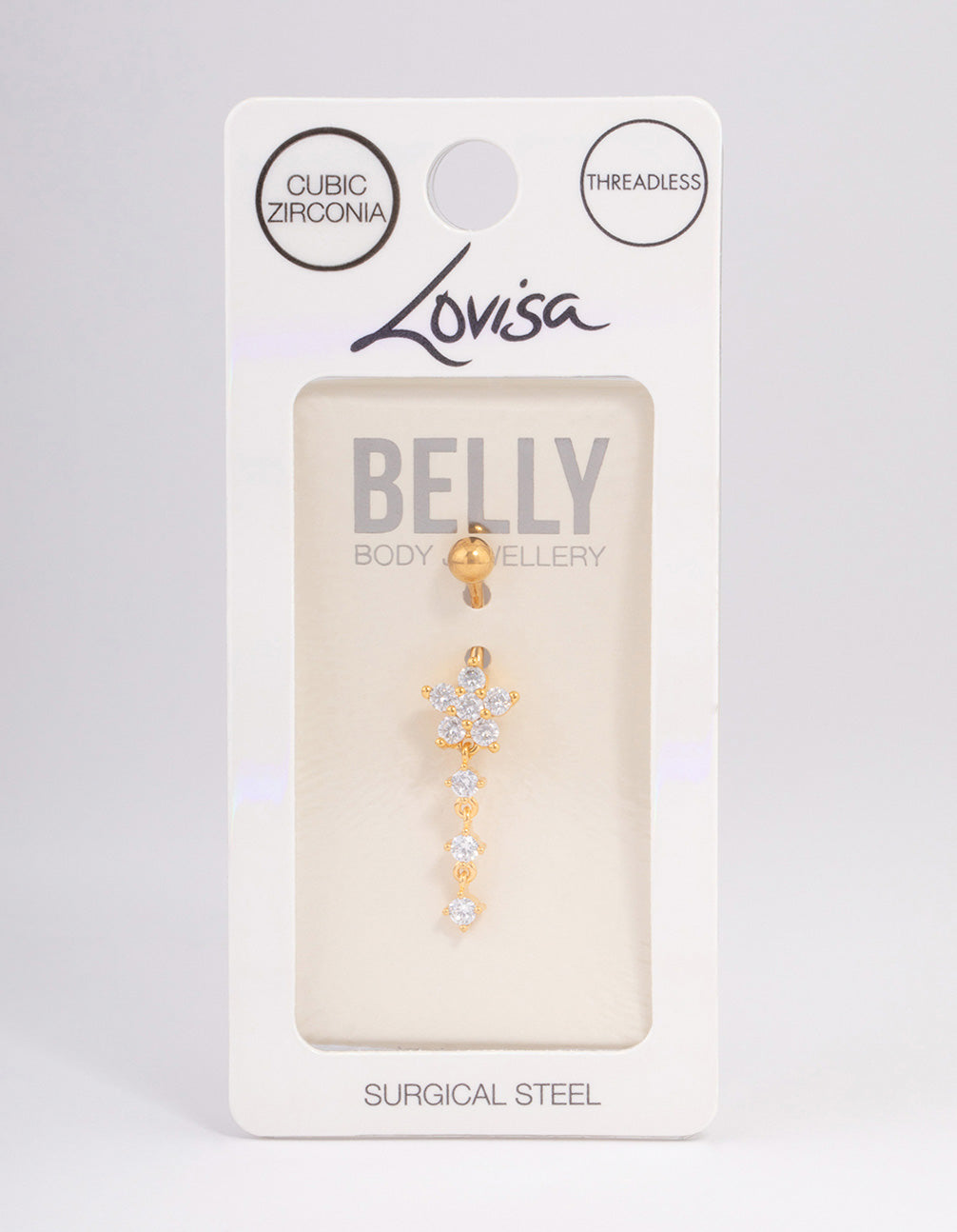 Invest in quality piercing jewellery that's perfect for everyday wear. Crafted from genuine surgical steel, jewellery from our Belly Body Packs Collection is durable, long-lasting and safe for sensitive skin. This belly bar features a cubic zirconia flower and a trio of cubic zirconia drops. This belly bar features a threadless style, for a secure fit and also makes it easier for stud to be removed.