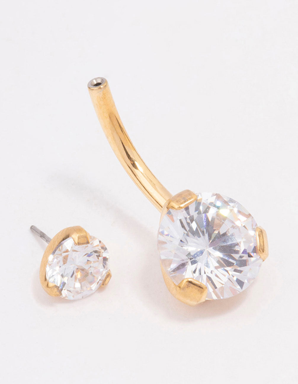 Gold Plated Surgical Steel Double Round Cubic Zirconia Belly Ring Gold Plated Surgical Steel Double Round Cubic Zirconia Belly Ring Gold Plated Surgical Steel Double Round Cubic Zirconia Belly Ring