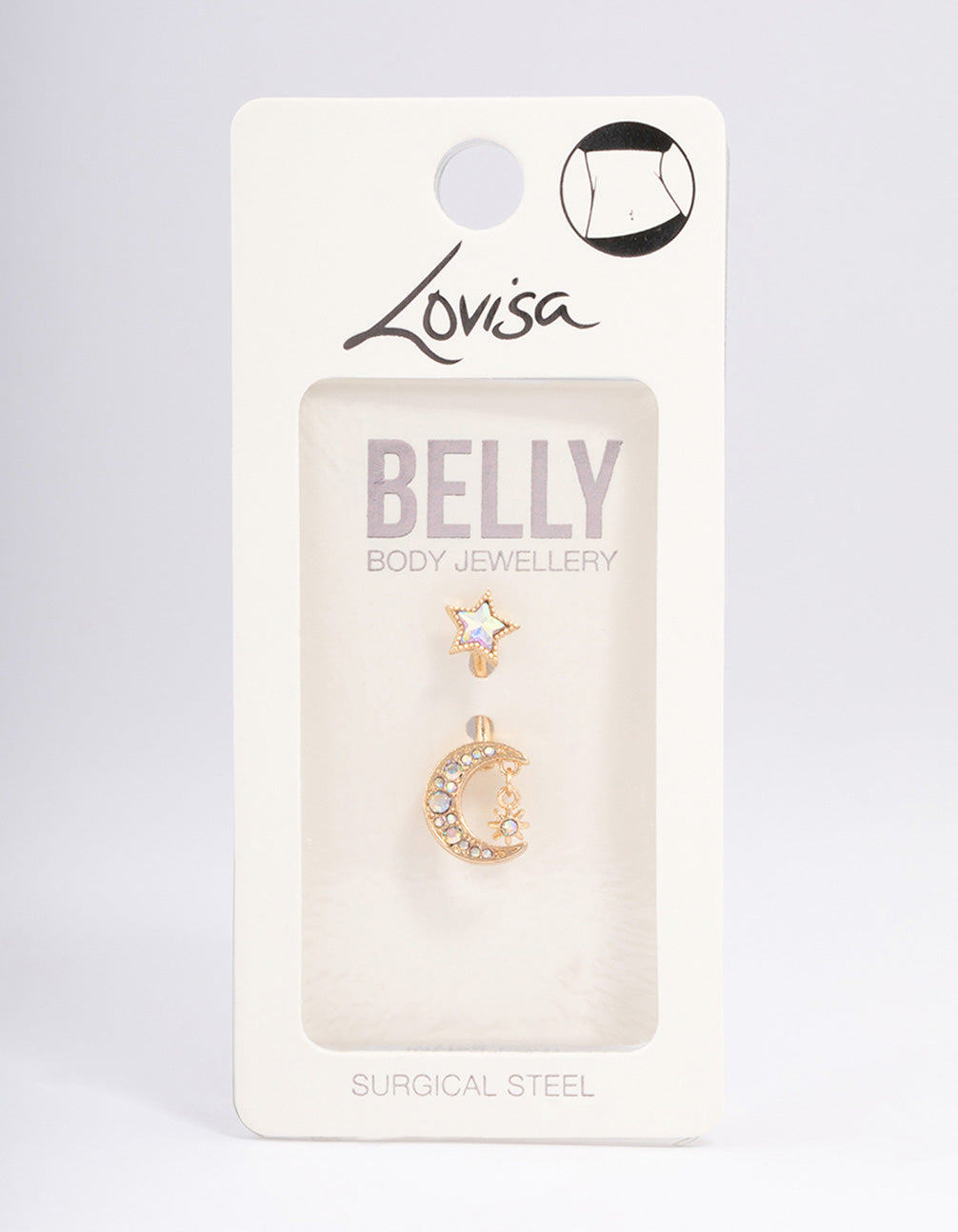Gold Plated Surgical Steel Twilight Charm Belly Ring Gold Plated Surgical Steel Twilight Charm Belly Ring Gold Plated Surgical Steel Twilight Charm Belly Ring