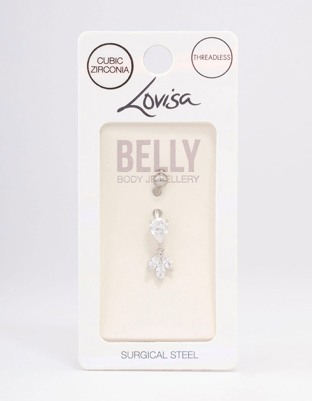 Surgical Steel Cubic Zirconia Pear Marquise Threadless Belly Bar