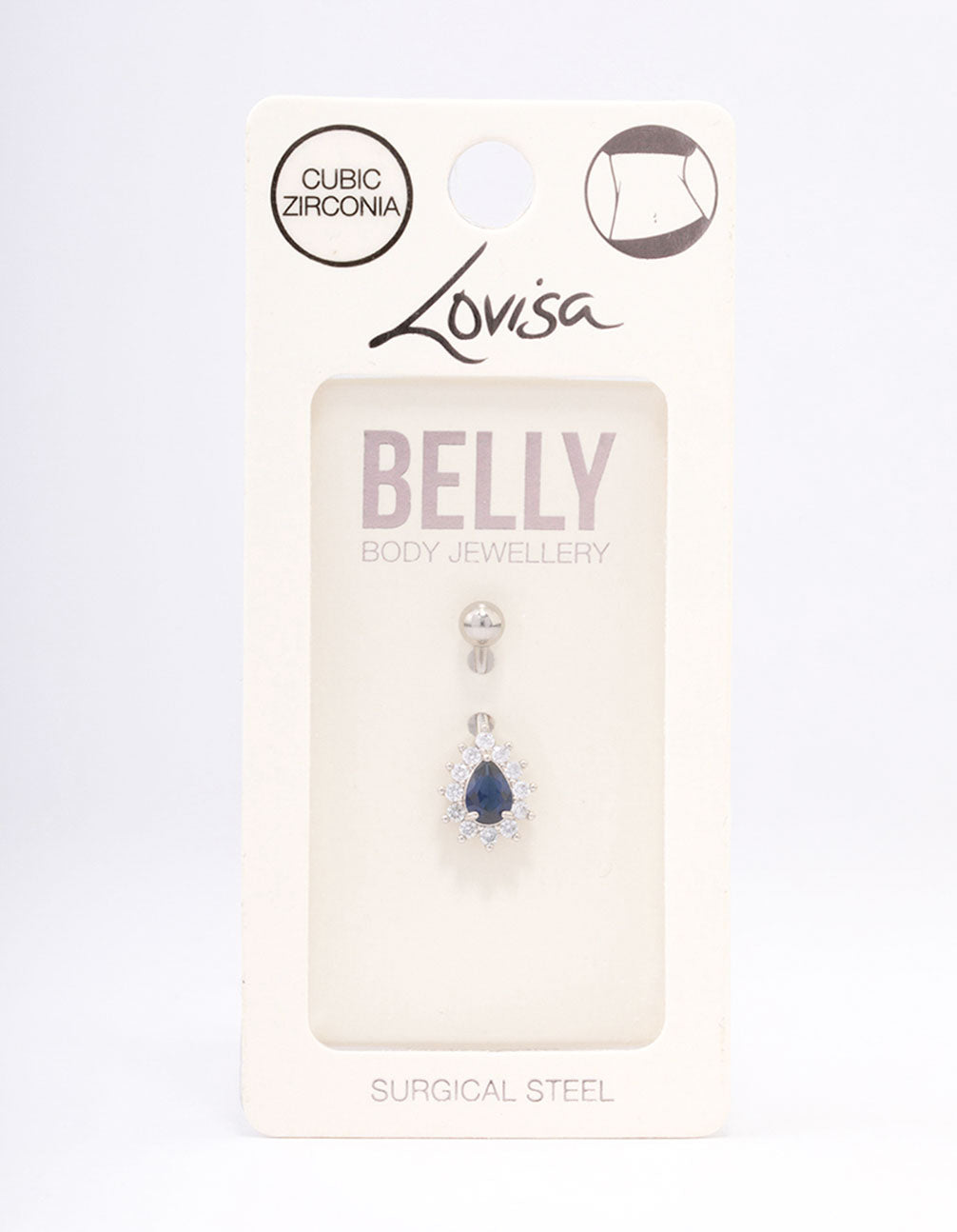 • This belly piercing features a cubic zirconia, pear-shaped crystal — perfect for adding a hint of glamour to your look.