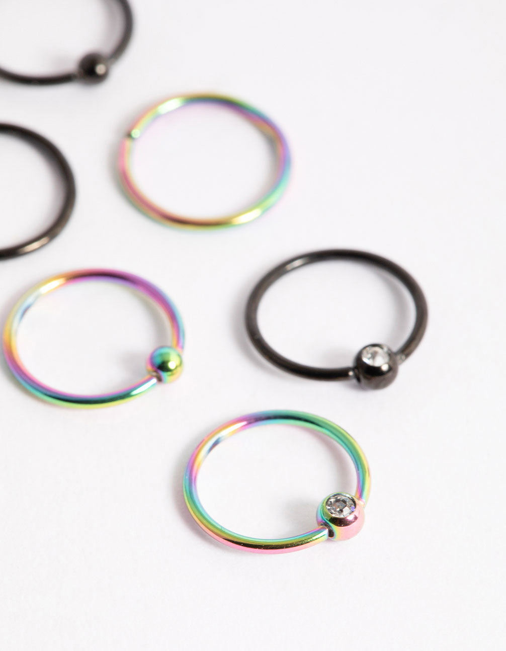 Surgical Steel Ball Cubic Zirconia Nose Stud 6-Pack