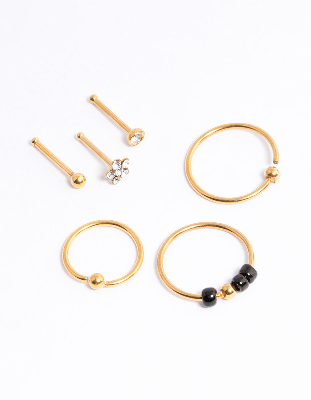 Gold Plated Surgical Steel Cubic Zirconia Flower Nose Stud 6-Pack