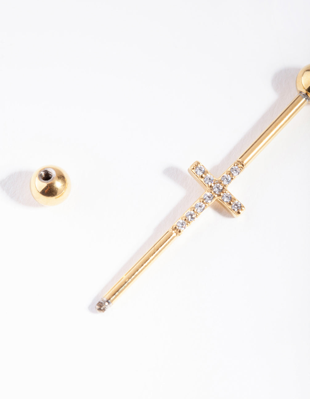 Lovisa body jewellery is made from surgical steel, which means it's gentle on your skin and perfect for daily wear. This industrial bar boasts a chic cross shape on a gold-toned setting. It has a gauge of 14 and is 1.6mm in length.