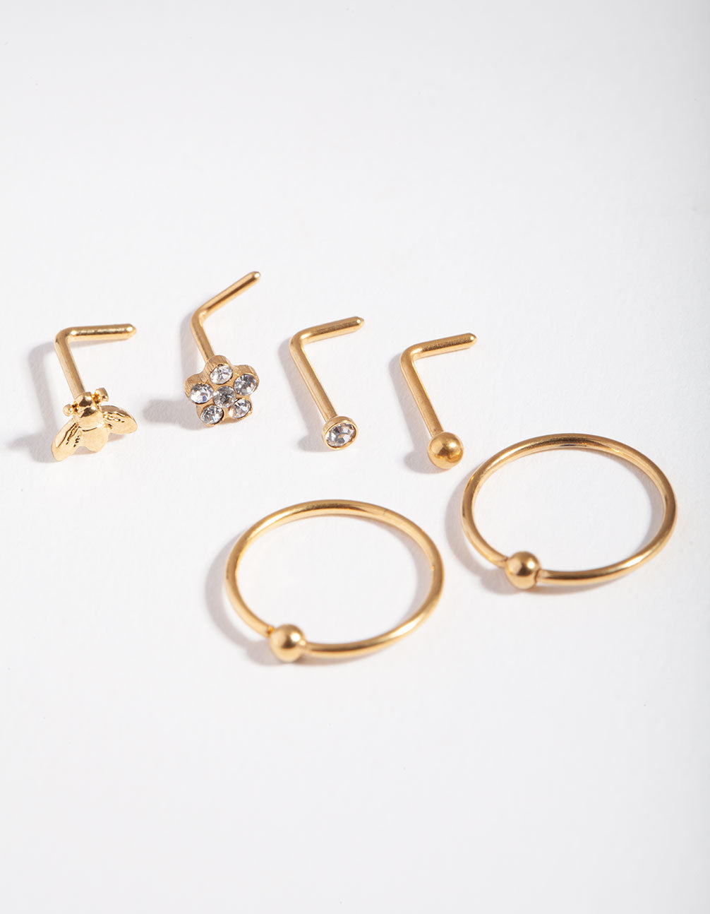 Gold Surgical Steel Flower & Bee Nose Stud 6-Pack