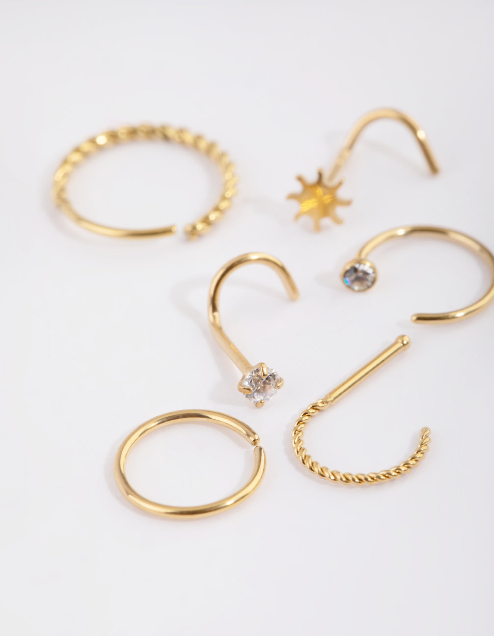 Gold Plated Surgical Steel Diamante Twist Nose Stud 6-Pack