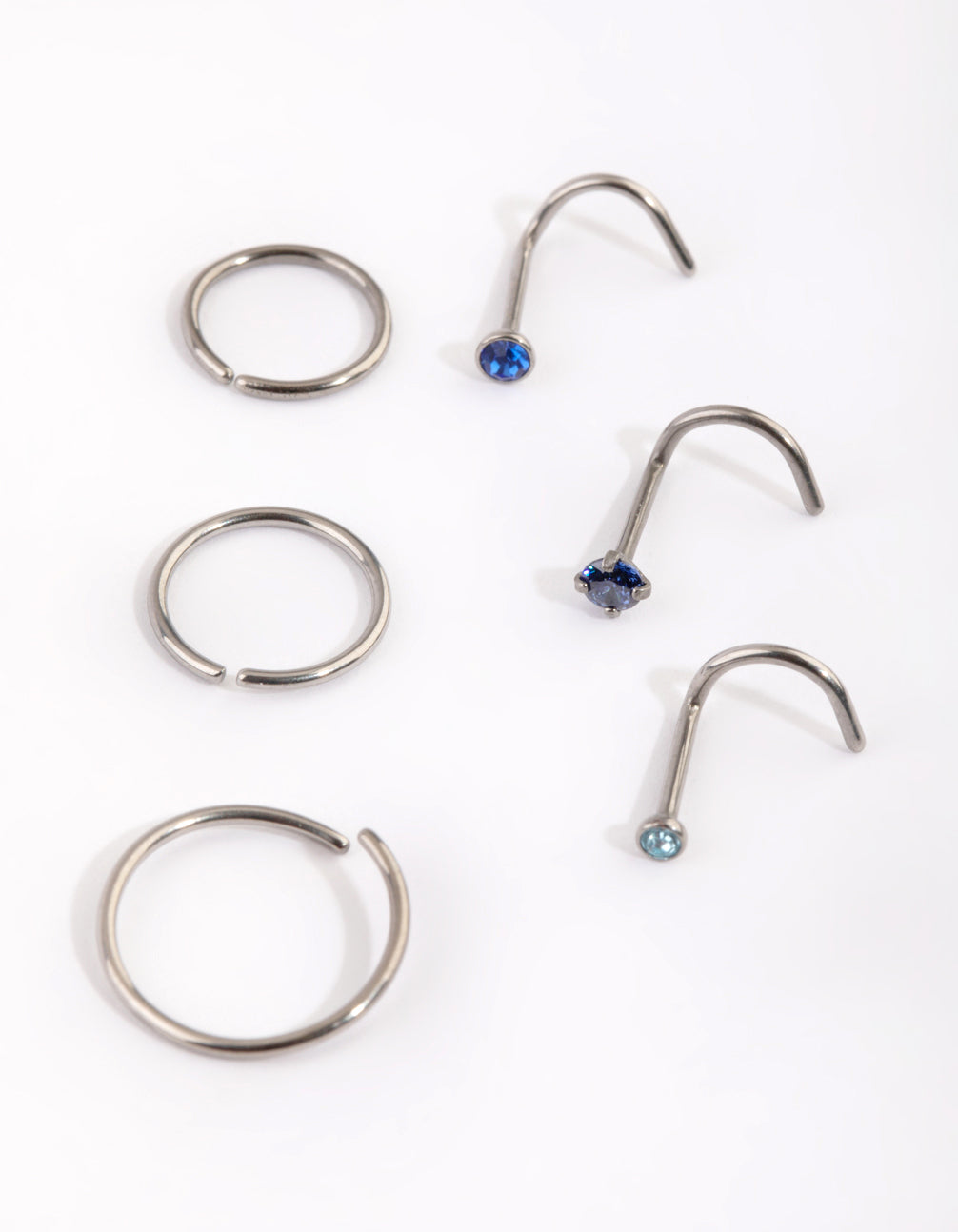 Titanium Diamante Nose Stud & Ring 6-Pack