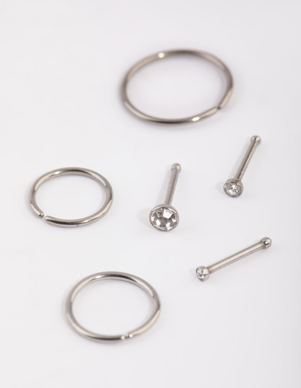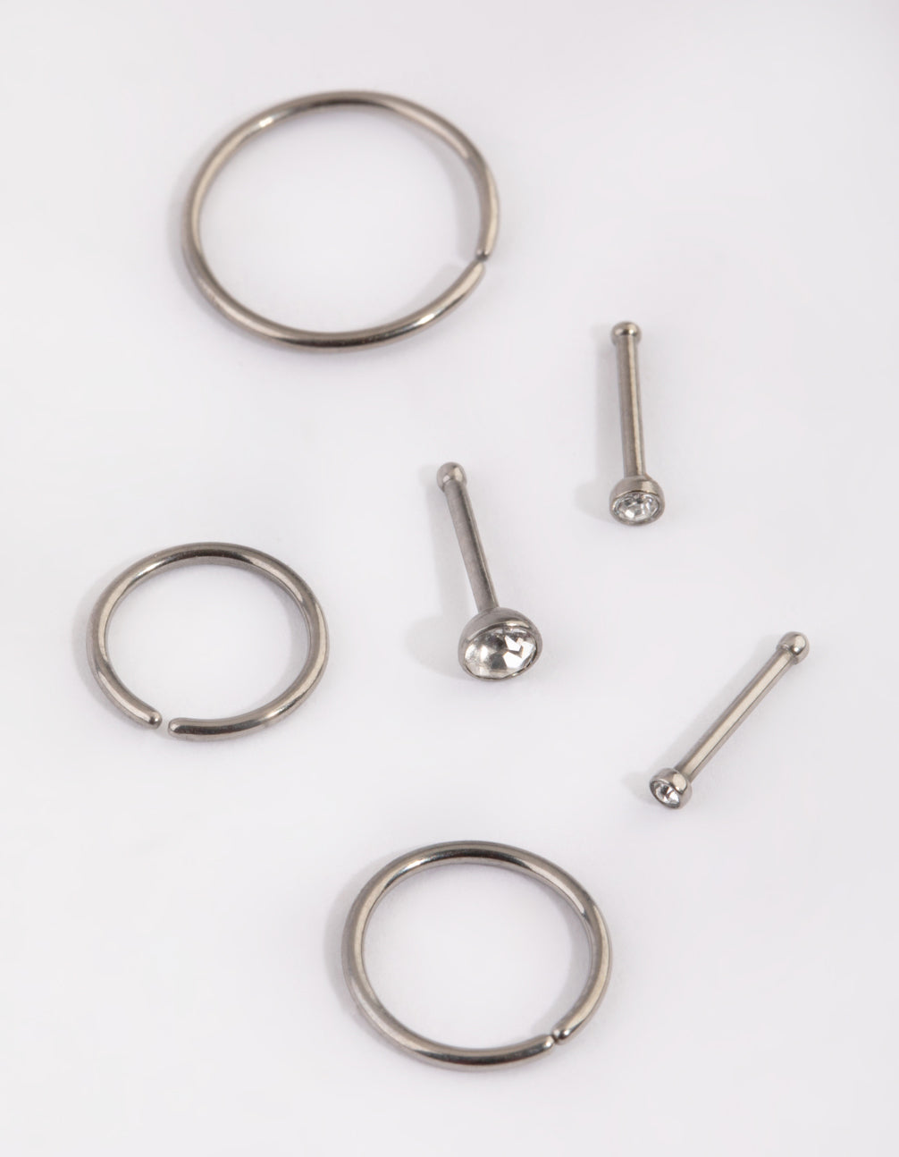 If you've got a nose for style, these are the studs for you! This pack features a variety of designs, change them up to suit your mood! They're made with premium titanium, so they're gentle on skin and comfortable for daily wear. The gauge measures 20G/0.8mm.