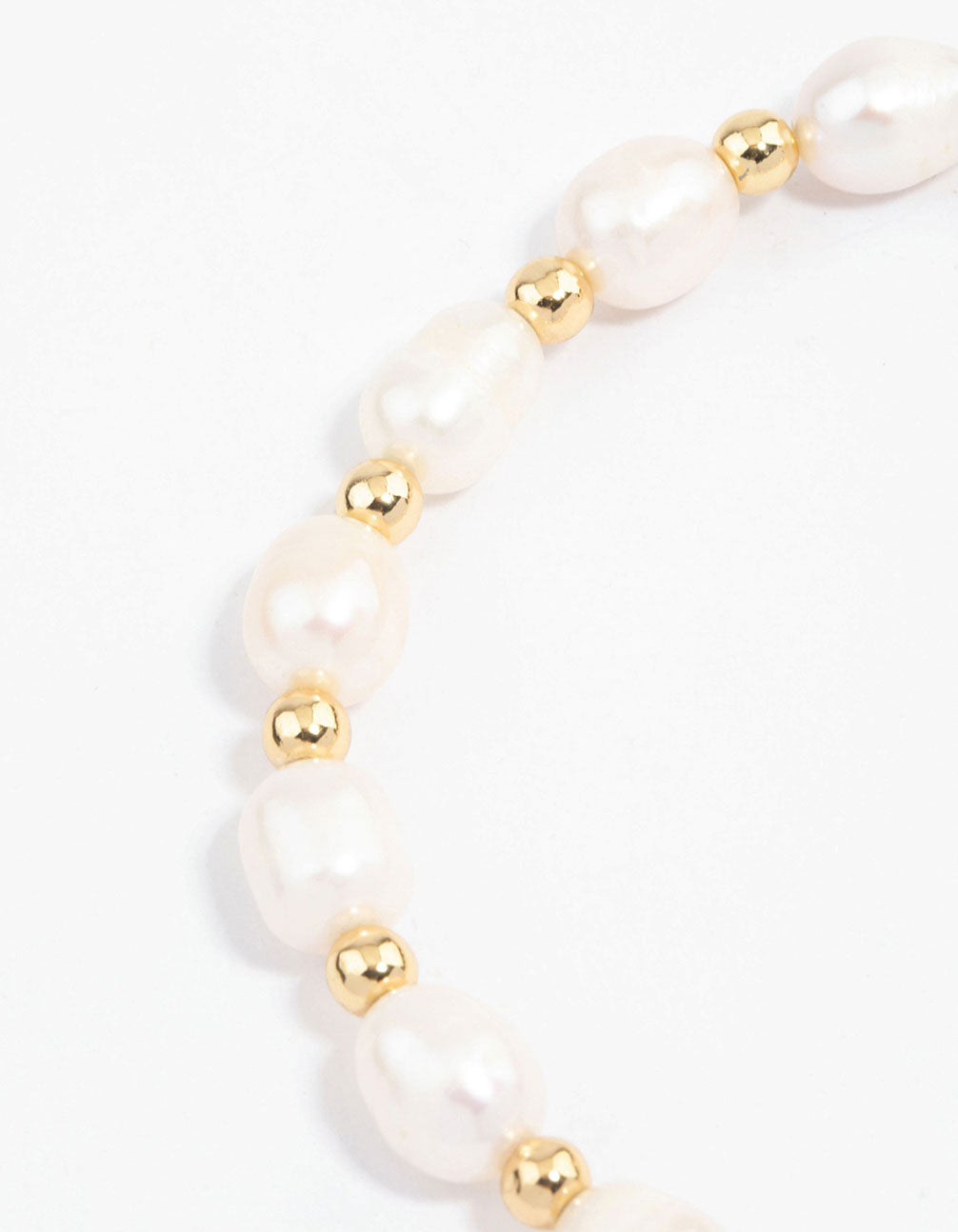 Gold Plated Beaded & Freshwater Pearl Stretch Bracelet