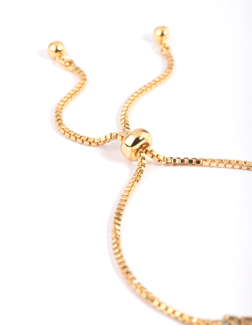 Gold Plated Cubic Zirconia Box Chain Toggle Tennis Bracelet