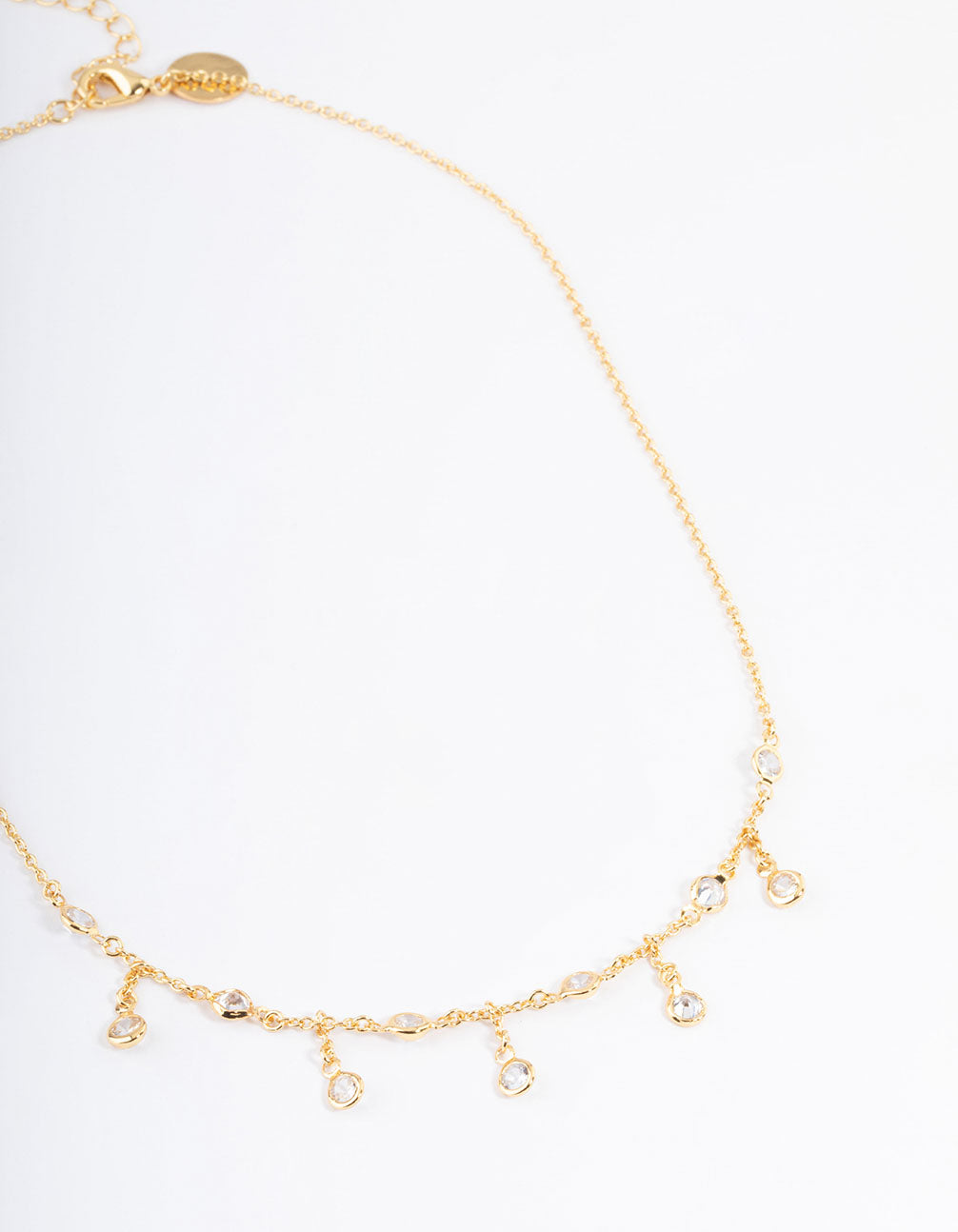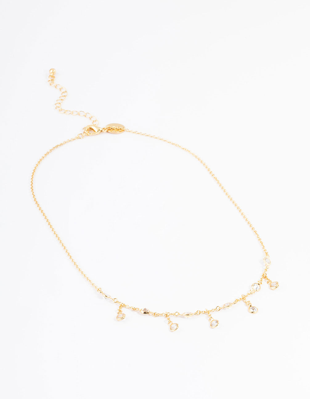 Gold Plated Cubic Zirconia Dainty Chain Drop Necklace