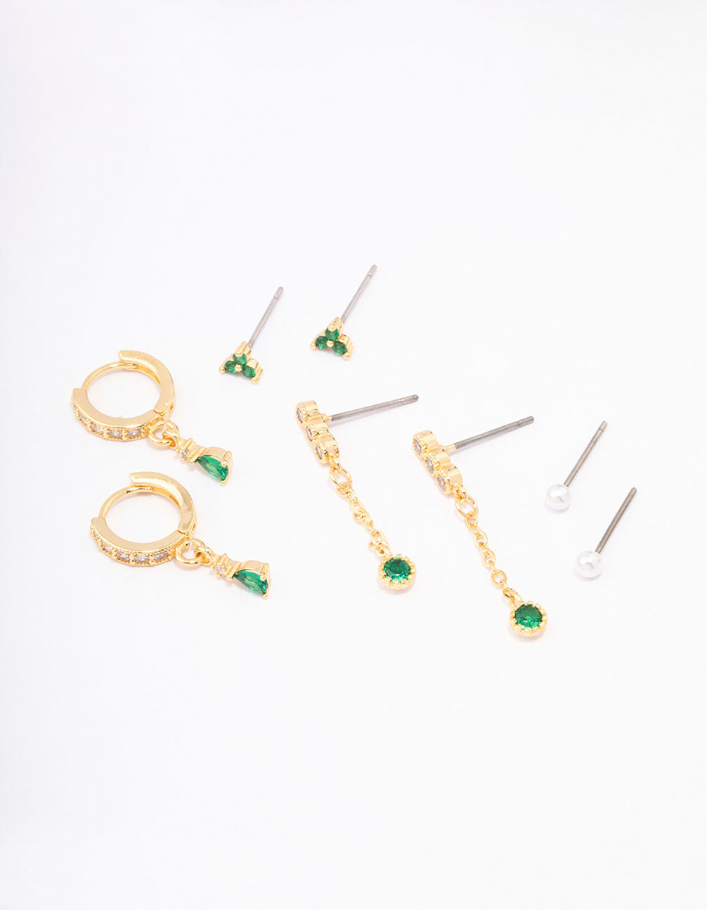 Gold Plated Cubic Zirconia Dainty Pearl Earrings 4-Pack