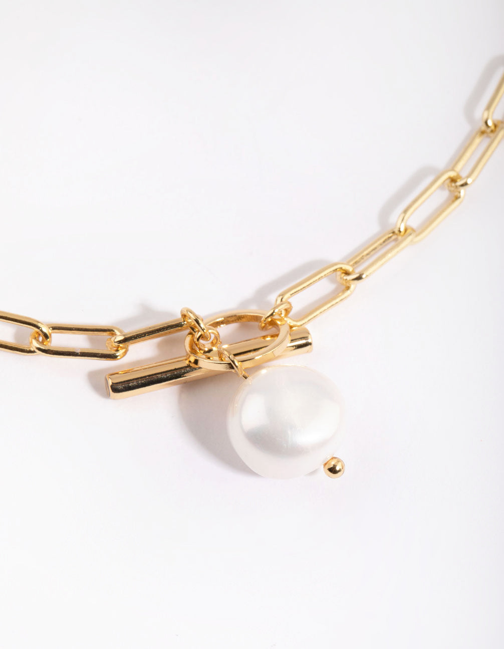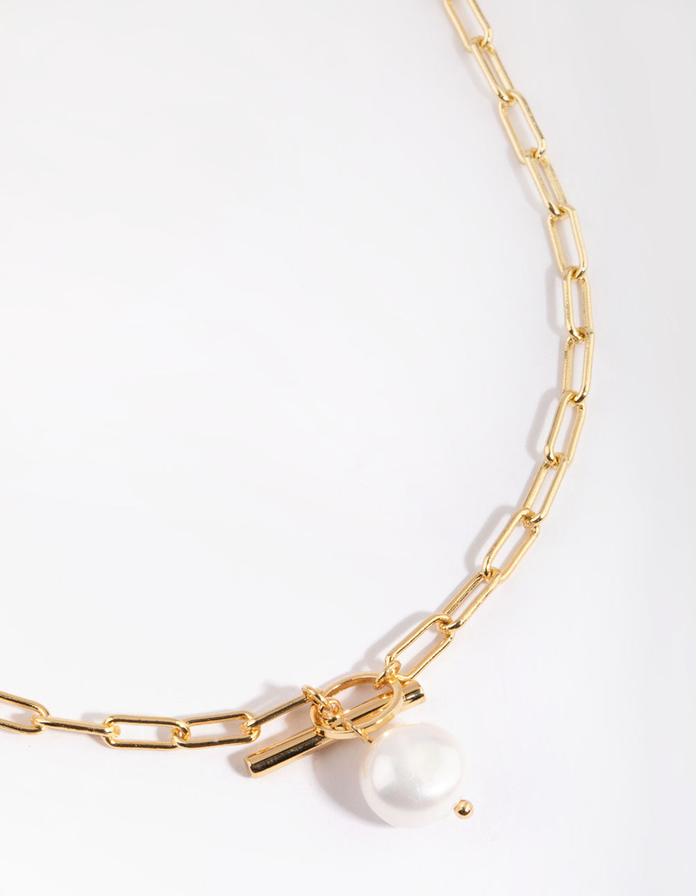 Gold Plated Fob Necklace with Freshwater Pearl Gold Plated Fob Necklace with Freshwater Pearl Gold Plated Fob Necklace with Freshwater Pearl