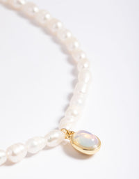 Gold Plated Freshwater Pearl Oval Drop Necklace