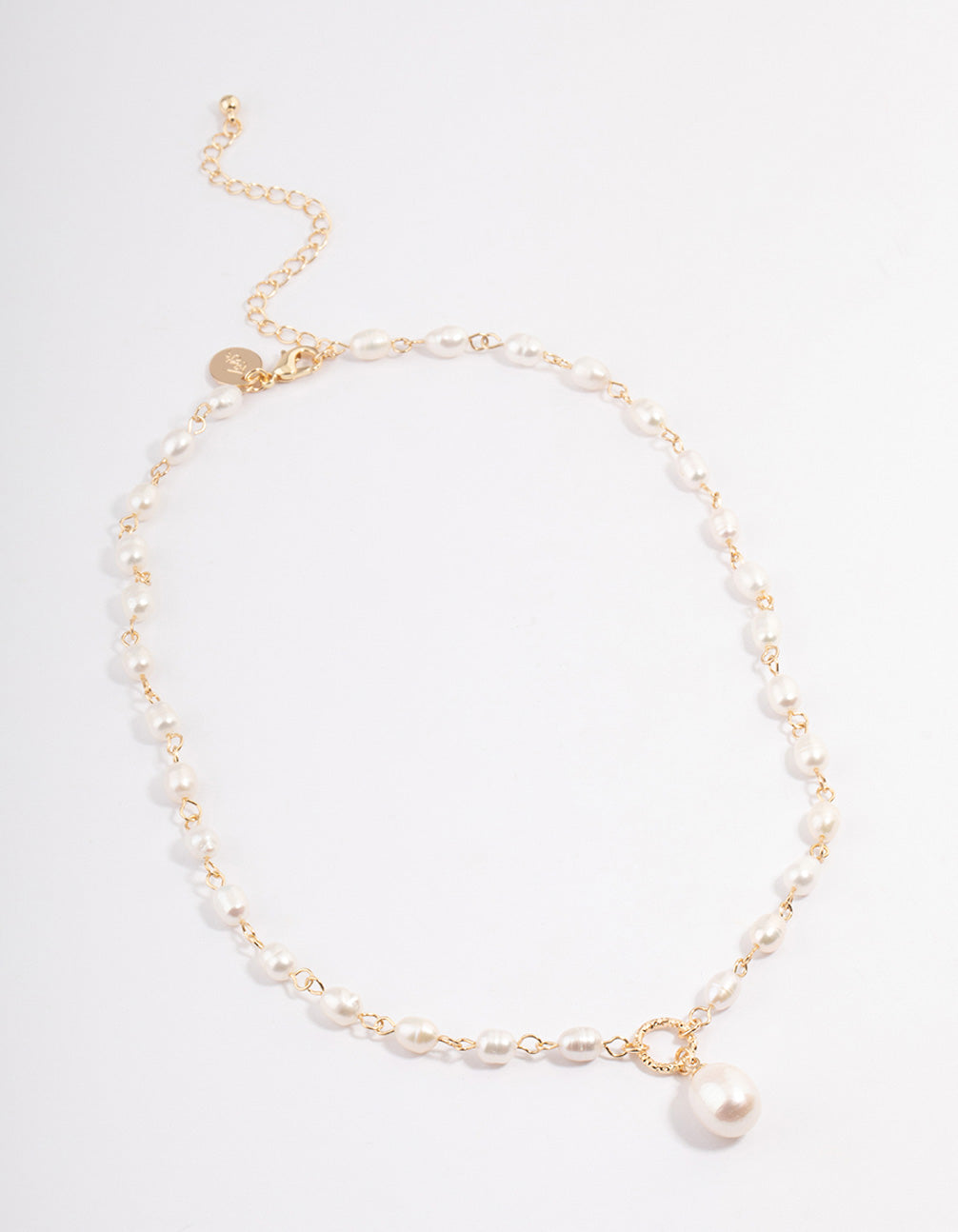 Gold Plated Freshwater Pearl Station Drop Necklace
