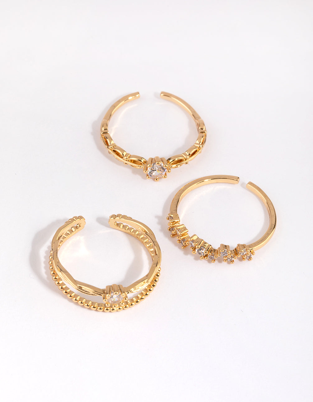 Gold Plated Ornate Ring Pack with Cubic Zirconia