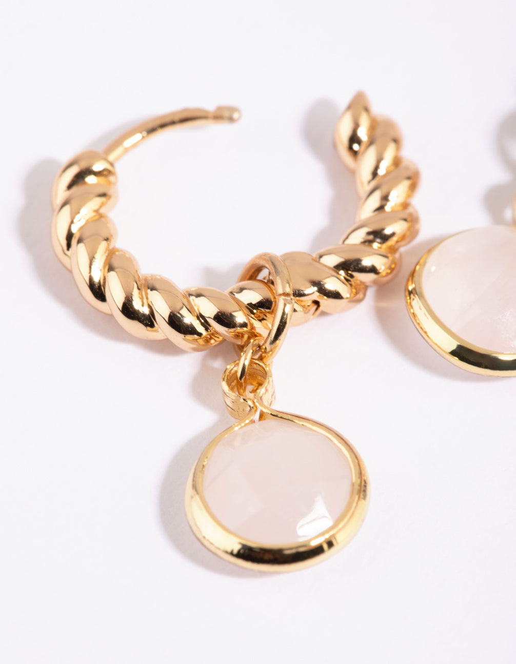 Gold Plated Huggie Hoop Earrings with Rose Quartz
