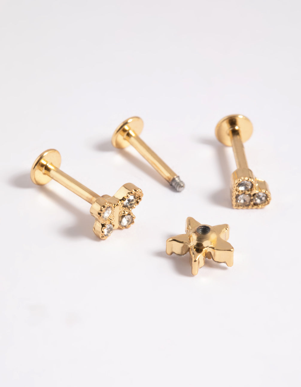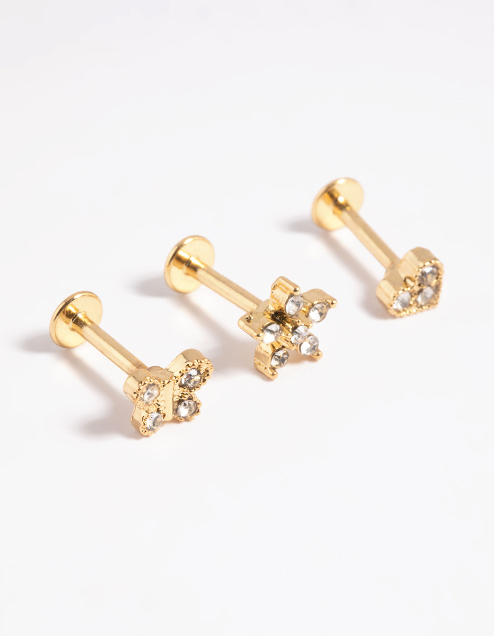 Show off your individuality with Lovisa body jewellery! Our premium body jewellery is plated with genuine gold and made with quality surgical steel to avoid skin irriation and ensure pieces are comfortable for day-to-day wear. This earring pack includes an array of earrings with flat, smooth backings which are suitable for cartilage piercings and ideal for ear stacking.