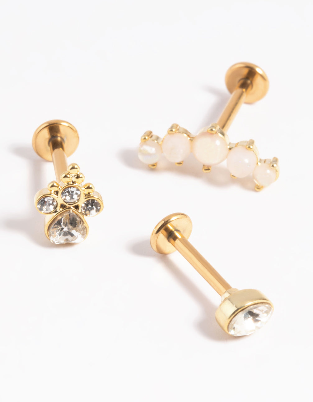 Gold Plated Surgical Steel Opal Crawler Flat Back Pack